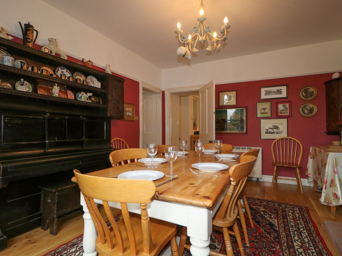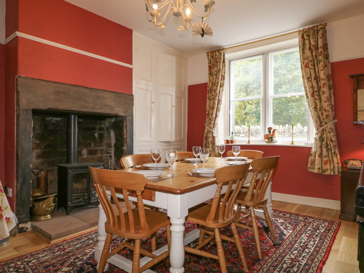 Three bedrooms: 1 x king-size, 1 x double, 1 x single. Bathroom with bath, shower, basin and WC. Cloakroom with basin and WC. Utility. Dining room with wood burner. Sitting room with open fire. Kitchen.
