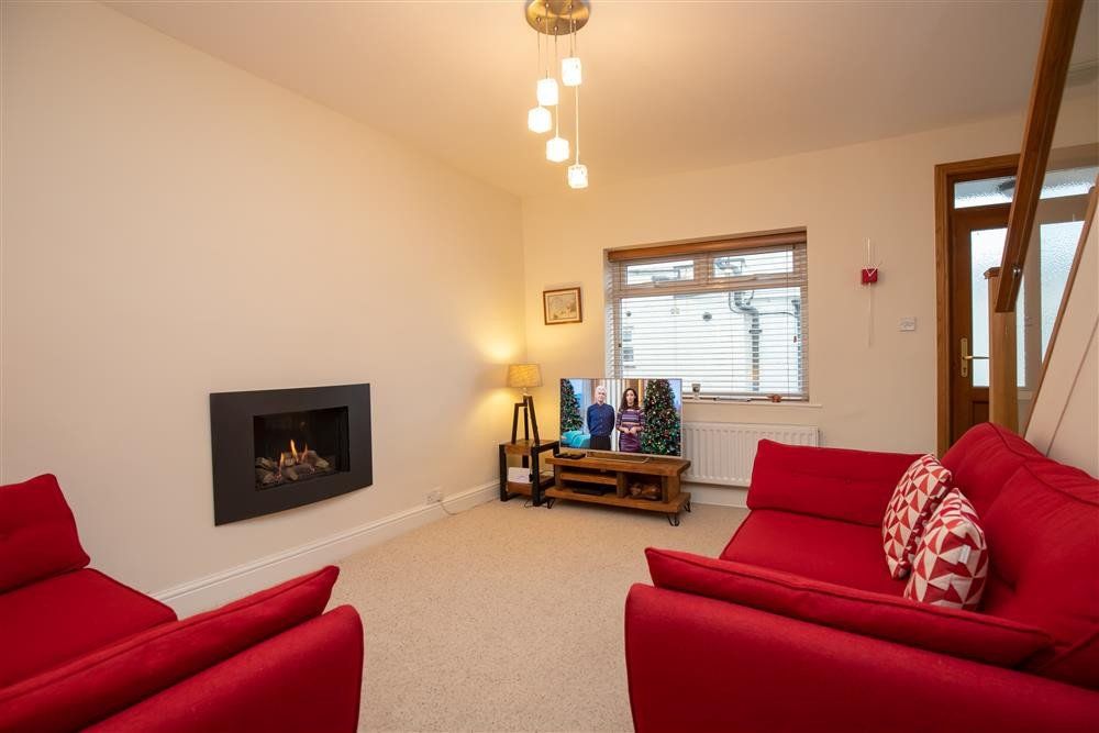 Two bedrooms: 1 x king-size with en-suite basin and WC, 1 x children’s bunk. Bathroom with bath, shower over, basin and WC. Kitchen/diner. Sitting room with flame effect gas fire.