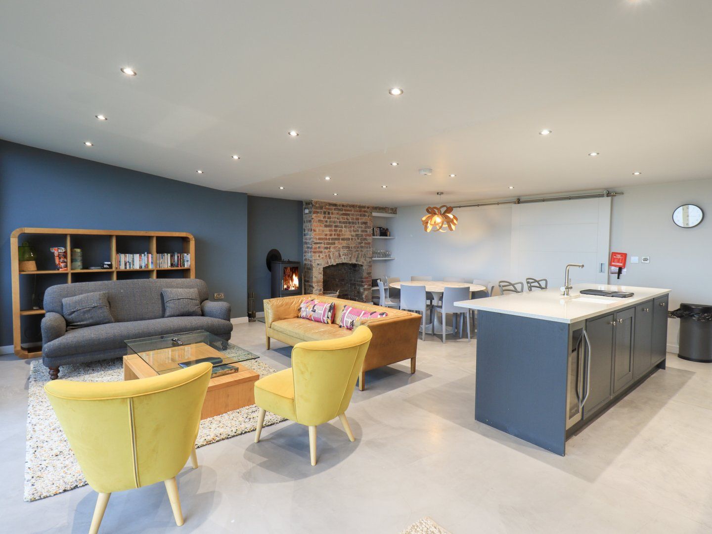 Accomodation Details Four bedrooms: 3 Ensuite bathrooms and one family bathroom. 1 x upper ground-floor twin beds, 2 x upper ground-floor king-size with en-suite shower, basin and WC, 1 x lower ground-floor king-size with en suite bathroom with roll top bath, shower over, basin and WC. Open-plan living space with kitchen, dining table and sitting area with woodburning stove.