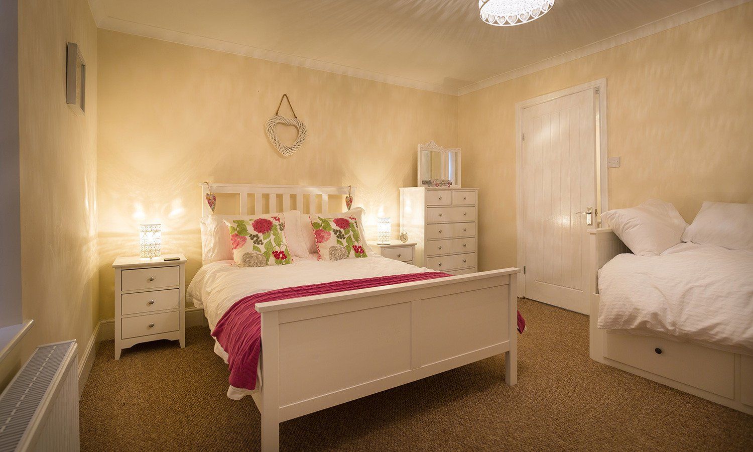 Accomodation Details Over three floors. Three bedrooms: 2 x second floor doubles with TV, 1 x first floor double or twin. Bathroom with bath, basin and WC. Shower room with shower, basin and WC. Kitchen. Sitting room with open fire, TV. Sitting room. Private parking at the rear. Please note property has a choice for the third bedroom - Twin or Double - Please specify when booking