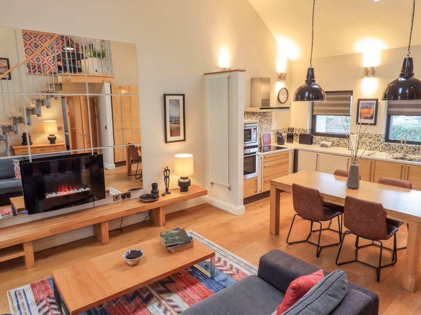 Accomodation Details Third floor apartment. Two bedrooms: 1 x king-size with en-suite bathroom with shower, basin and WC, 1 x king-size. Bathroom with bath, shower, basin and WC. Open-plan living area with kitchen, dining area and sitting room with wall-mounted electric fire. Mezzanine sitting area