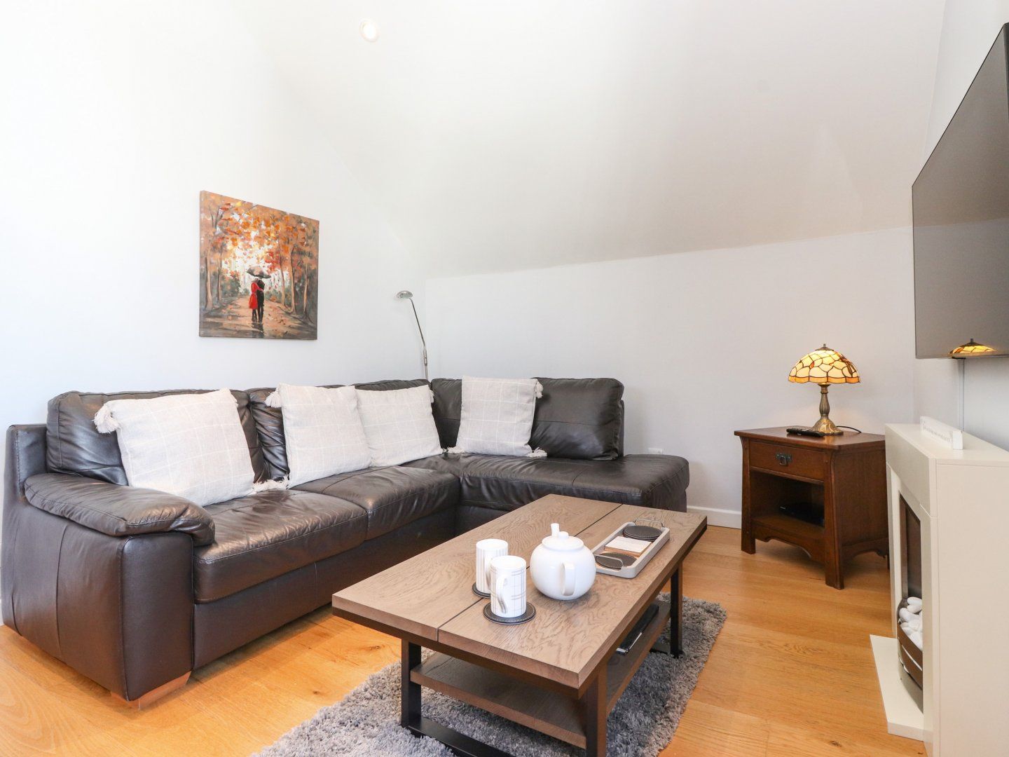 When we arrived the apartment wasn't quite ready so we were told we could park up in the allocated space & come back for the key. Honestly it did make me and my husband squirm a little bit as the outside of the property is not much to look at, its in a bit of a back alley which is a bit tatty looking. However on reflection the location was brilliant as we were so close to town but tucked away enough to feel secluded, also the car parking space was ace as our family members who were staying at another property had to find parking on the street which in Keswick on a Saturday is pretty much impossible. The apartment itself is lovely, modern wood flooring and neutral colours, plenty of space for 2, I'm not sure how 4 would fair though. Sadly when we arrived there were some cleaning issues. Some things were immaculate but it was like some bits had been completely forgotten, the floor looked like it had not been hoovered and as an obsessively clean freak I had to hoover it myself so I felt comfortable. Also some mugs and cups in the cupboard went straight into the dishwasher before we could use them. Another problem we had was the bed - the apartment gets very hot and the bed had one of those plastic base sheets and sleeping on it was so uncomfortably hot and sticky, the fitted sheet that we were actually laying on kept popping off in the night so some mornings we'd wake up laying directly on the plastic sheet, sweaty and sticky. The duvet also was far too thick for an apartment that got so hot. Some good points were that the apartment has a massive window in the living area which you can fully open and look at the beautiful scenery. The open plan kitchen and living area is great and I loved the breakfast bar. With just a few tweaks and a bit more attention to detail this apartment would be 5 star. We'd still return as you can't fault the location and generally it is a lovely place to stay.