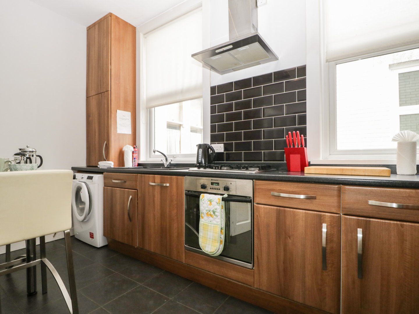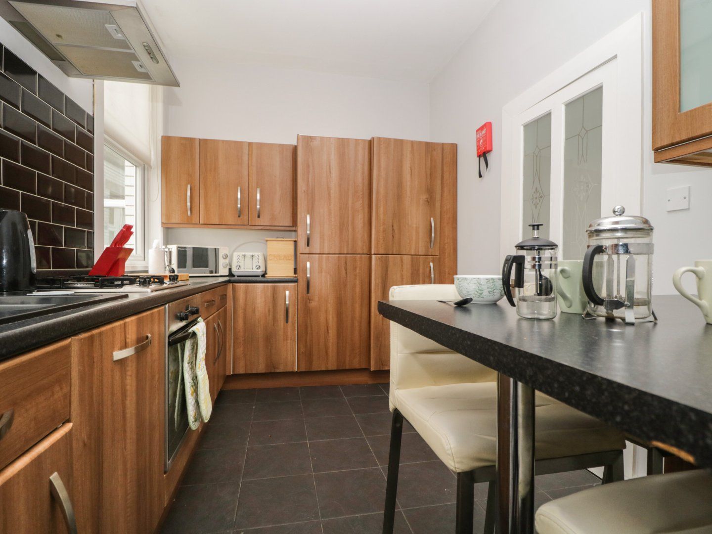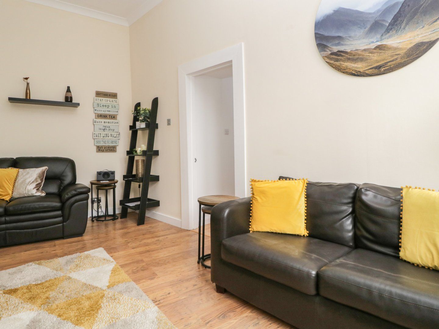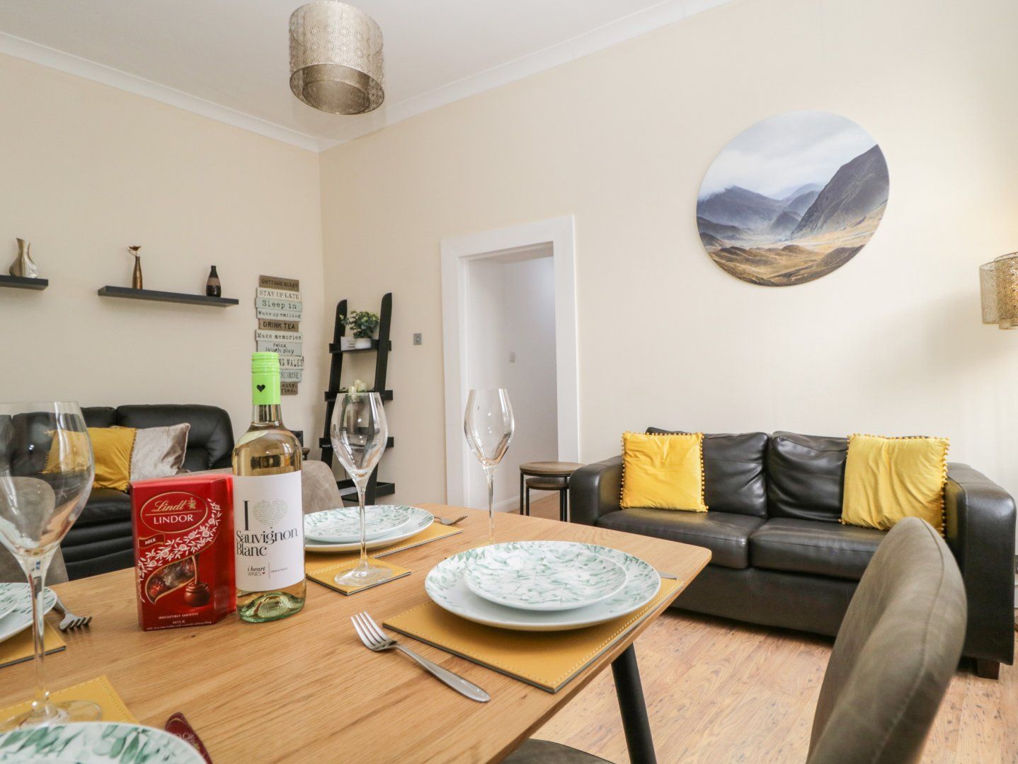 We spent 4 days in this lovely town and beautiful area, and this apartment fit our needs well. The location couldn't have been better- a half block from the rental office where we picked up keys and towels (they must be rented separately and were quite nice), a half block from the square and close to stores, restaurants, parks and trails, and amenities. Although the entrance to the apartment looks a little shaky as it shares the entryway with a convenience store, and there is one flight of steps (wide and well-lit), the place was spacious and had everything we needed. The place was clean and had lots of plugs, extra bedding, cleaning and laundry supplies and a hair dryer. The beds were very comfortable, there were large closets in the bedroom, and the large bathroom was great with a wonderful shower and plenty of hot water. The gathering room was also quite large, but quite dim. The overhead light was inadequate and the one standing lamp did not work. There were two small tables to move around for holding drinks, etc., but they were not entirely sufficient and were heavy to move. The kitchen, though adequately equipped, had an awkward layout, making it difficult to work in. The eating arrangement was especially awkward, with a fixed table and chairs that had to be adjusted for height. That being said, we did just fine. The heating was difficult to manage- we controlled it with open windows and blankets. That meant some street noise, especially at night, but it was not a big problem. The free wi-fi was fast and consistent. Although there were some features that we felt could be improved, the apartment was overall a good find at a reasonable price. I would recommend it for a moderate level accommodation.