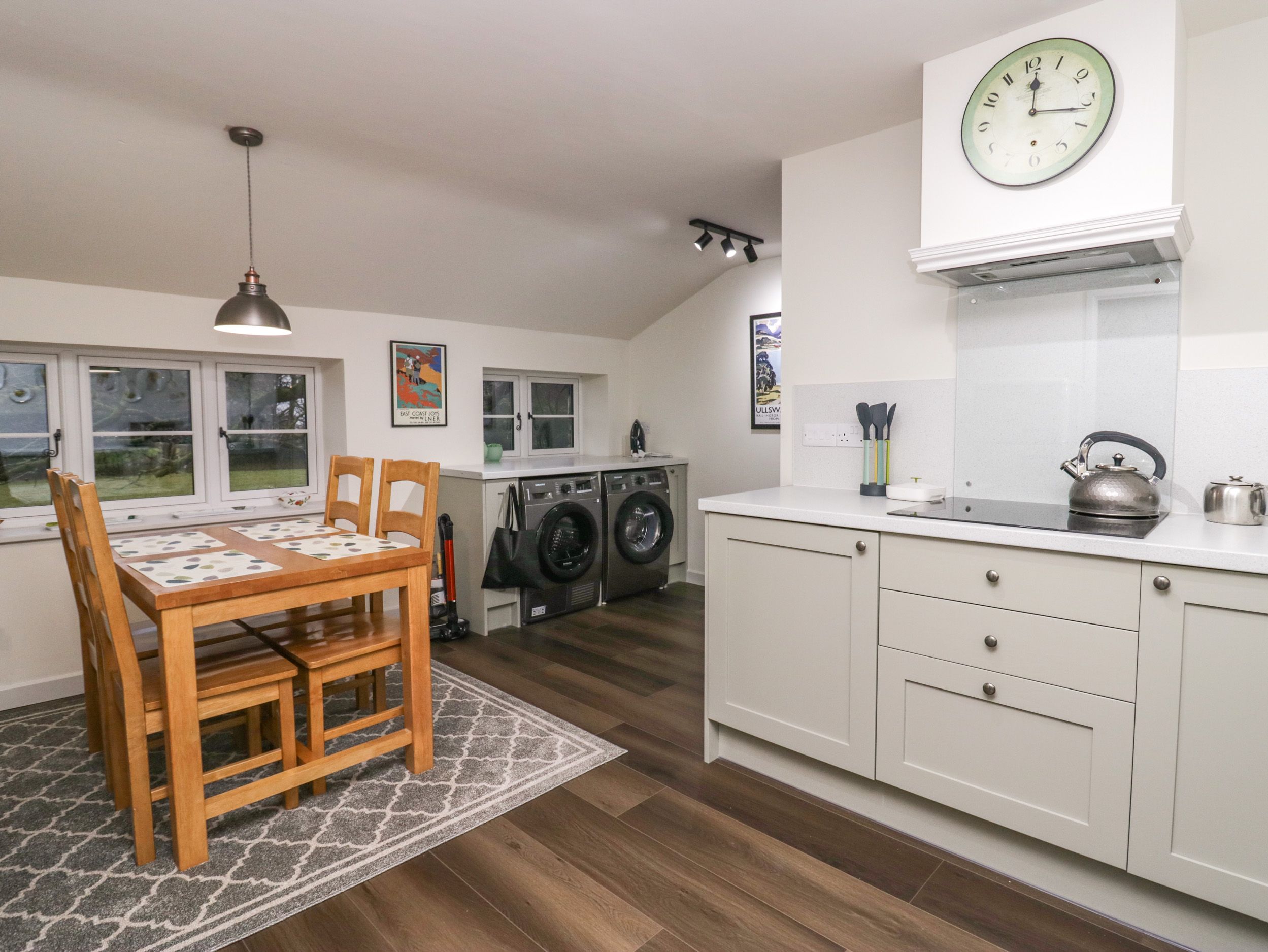 The Barn consists of a reverse-level property with open-plan, first-floor living space with a kitchen with electric oven, induction hob, microwave, fridge/freezer, washing machine, tumble dryer, dishwasher, a dining space for four, and a sitting area with Smart TV. The bedrooms are ground-floor and include a king-size and twin, serviced by a ground-floor bathroom. Outside there is a non-enclosed front patio with furniture, plus off-road parking for two cars. Within 0.4 miles or less you will find a shop, river, and pub, and within 2.4 miles, a lake, and please note this is a smoke-free and pet-free property. WiFi, fuel, power, bed linen, and towels included in the rent. Highchair and travel cot available. Make a memorable getaway to Cumbria with The Barn. Please Note: The owner can only accommodate a Monday and Friday Check In, with Monday or Friday Check Out dates