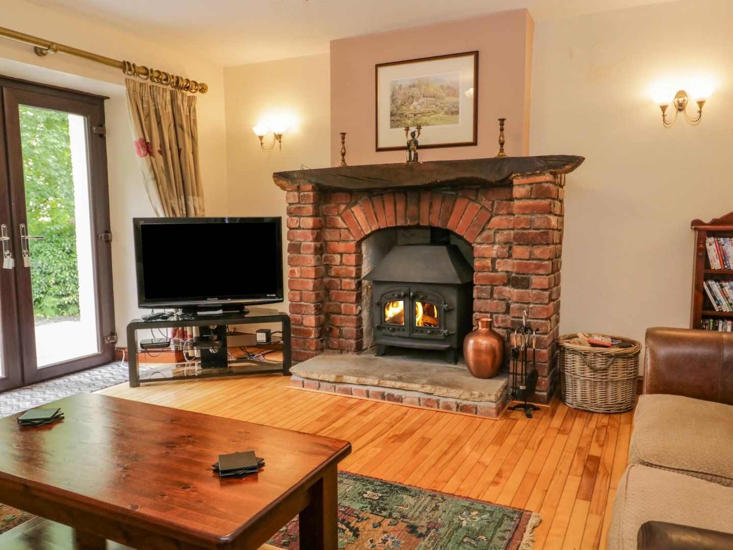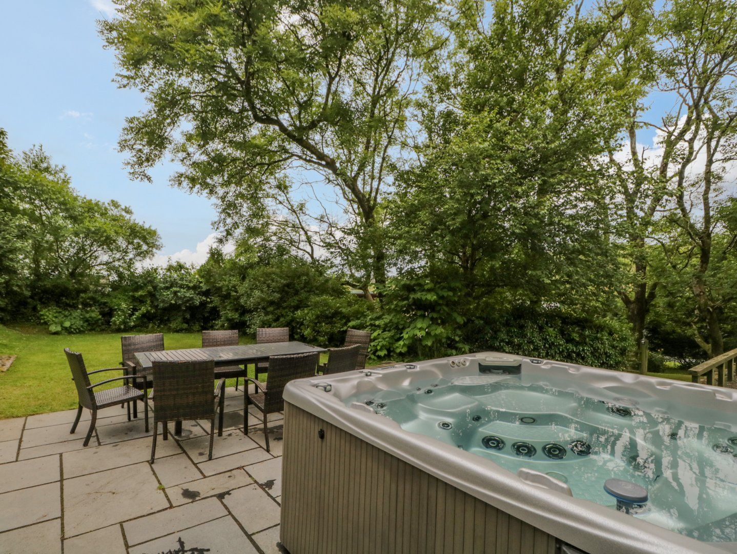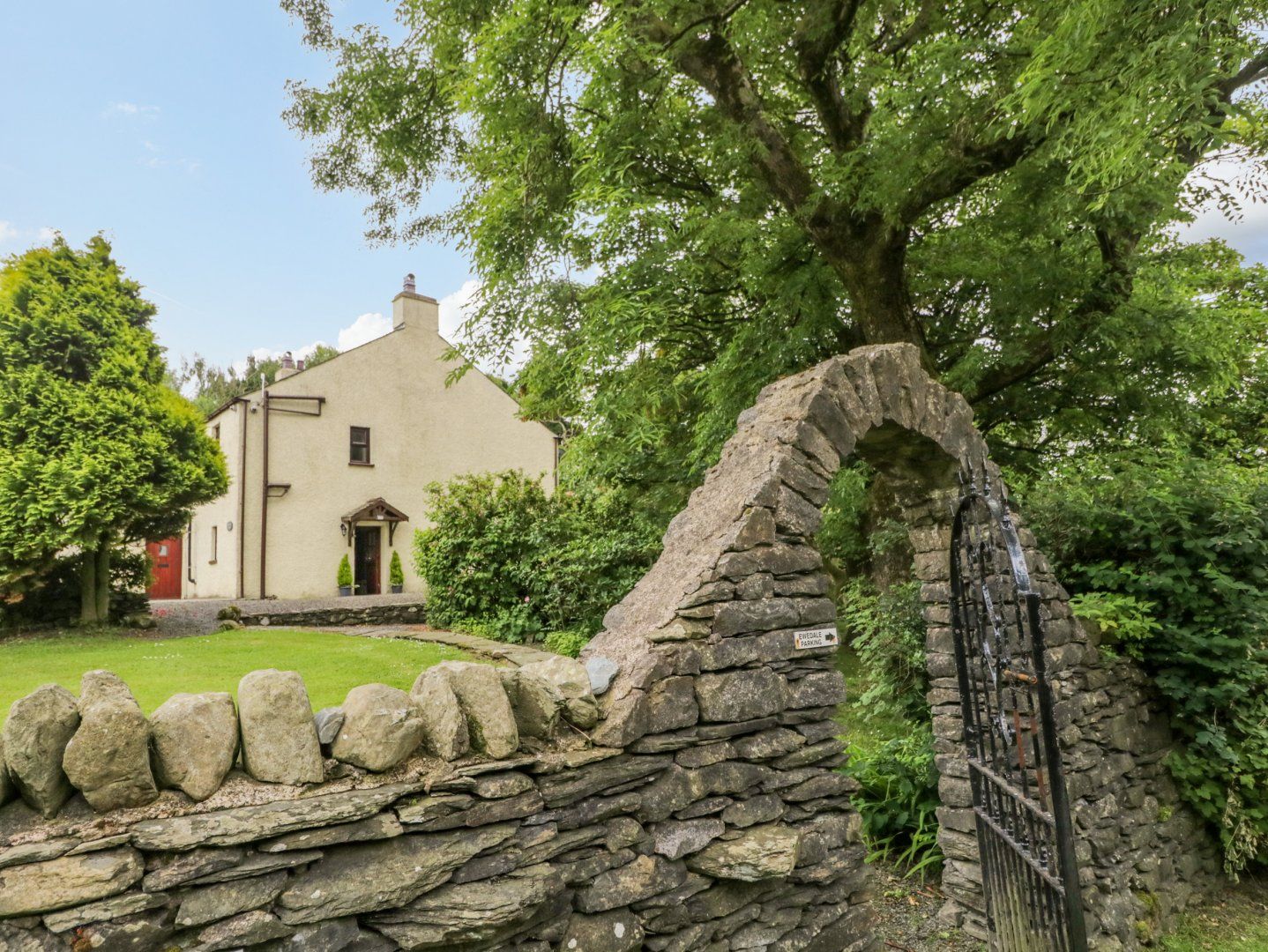 Amenities Oil central heating with 2 x woodburning stove. Range electric cooker with oven and hob, microwave, fridge/freezer, washing machine, tumble dryer, dishwasher. Smart TV, WiFi. Fuel, power and starter pack for woodburning stove inc. in rent. Bed linen and towels inc. in rent. Highchair, travel cot and stairgate available on request. Off-road parking for 4 cars. Rear garden with lawn, patio, furniture, hot tub and barbecue. Front garden with lawn and picnic bench. Sorry, no pets and no smoking. Note: Sloped ceilings and beams in second-floor king-size, please take care. Shop 3.4 miles, pub 2.8 miles