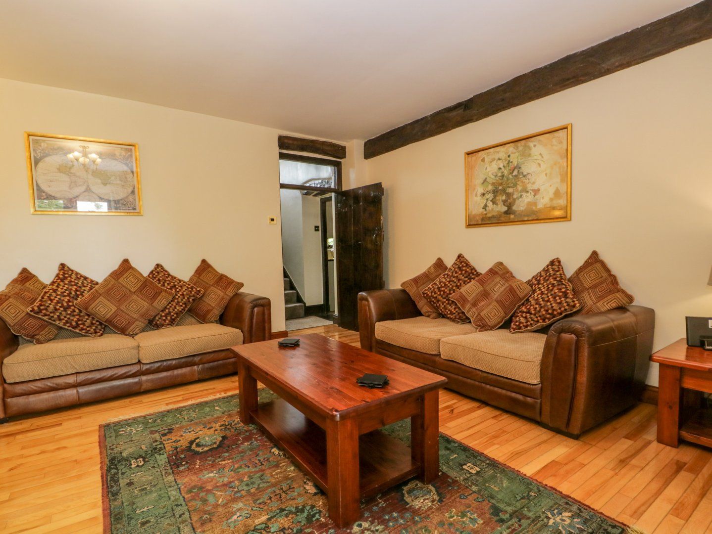 Accomodation Details Please note: arrivals only on Mondays, Wednesdays and Fridays. Over three floors. Four bedrooms: 1 x super-king-size, 1 x king-size with en-suite bath, walk-in shower, basin and WC, 1 x king-size, 1 x double. Bathroom with bath, shower over, basin and WC. Cloakroom with basin and WC. Kitchen/diner with woodburning stove. Utility. Sitting room with woodburning stove