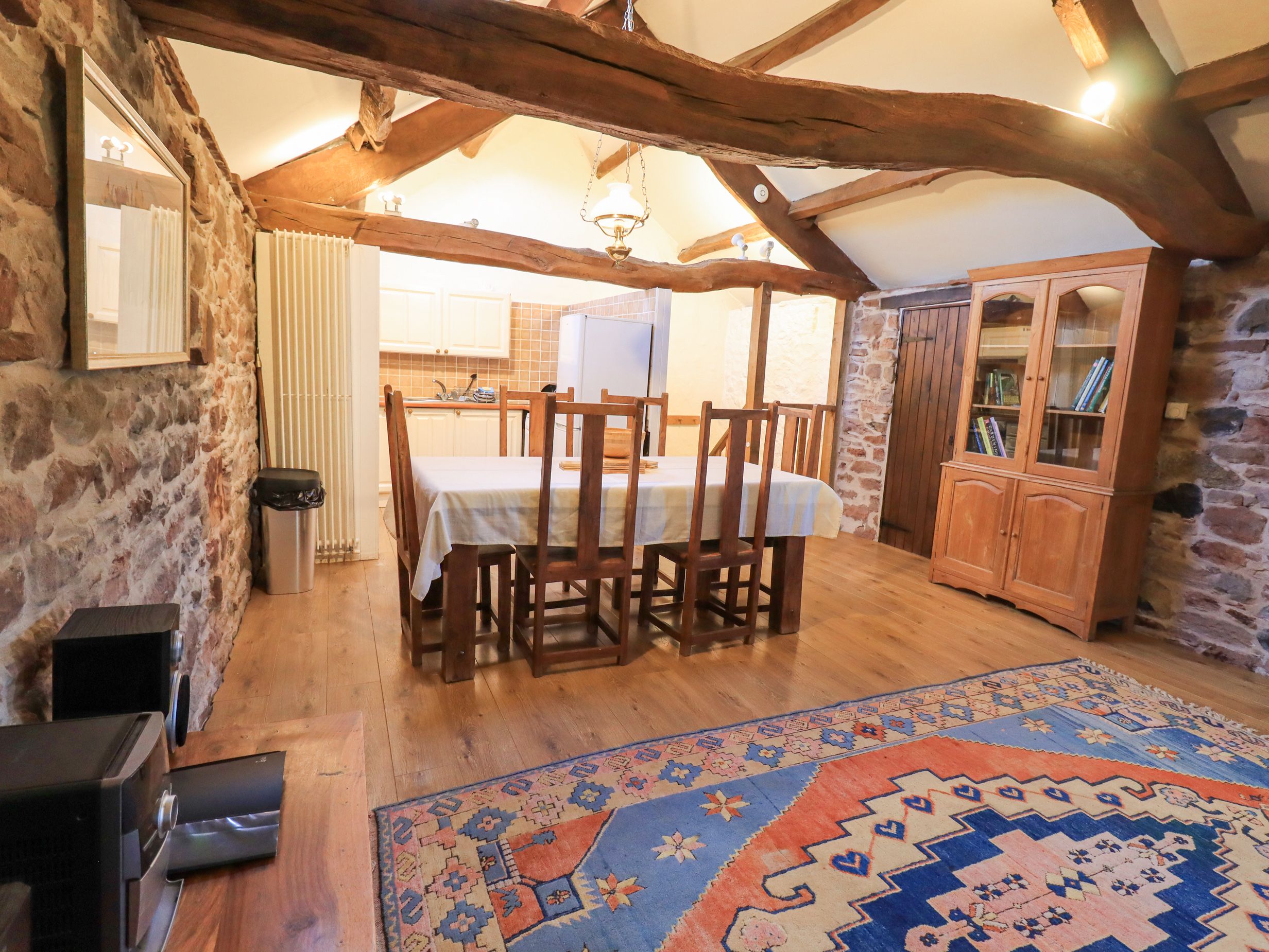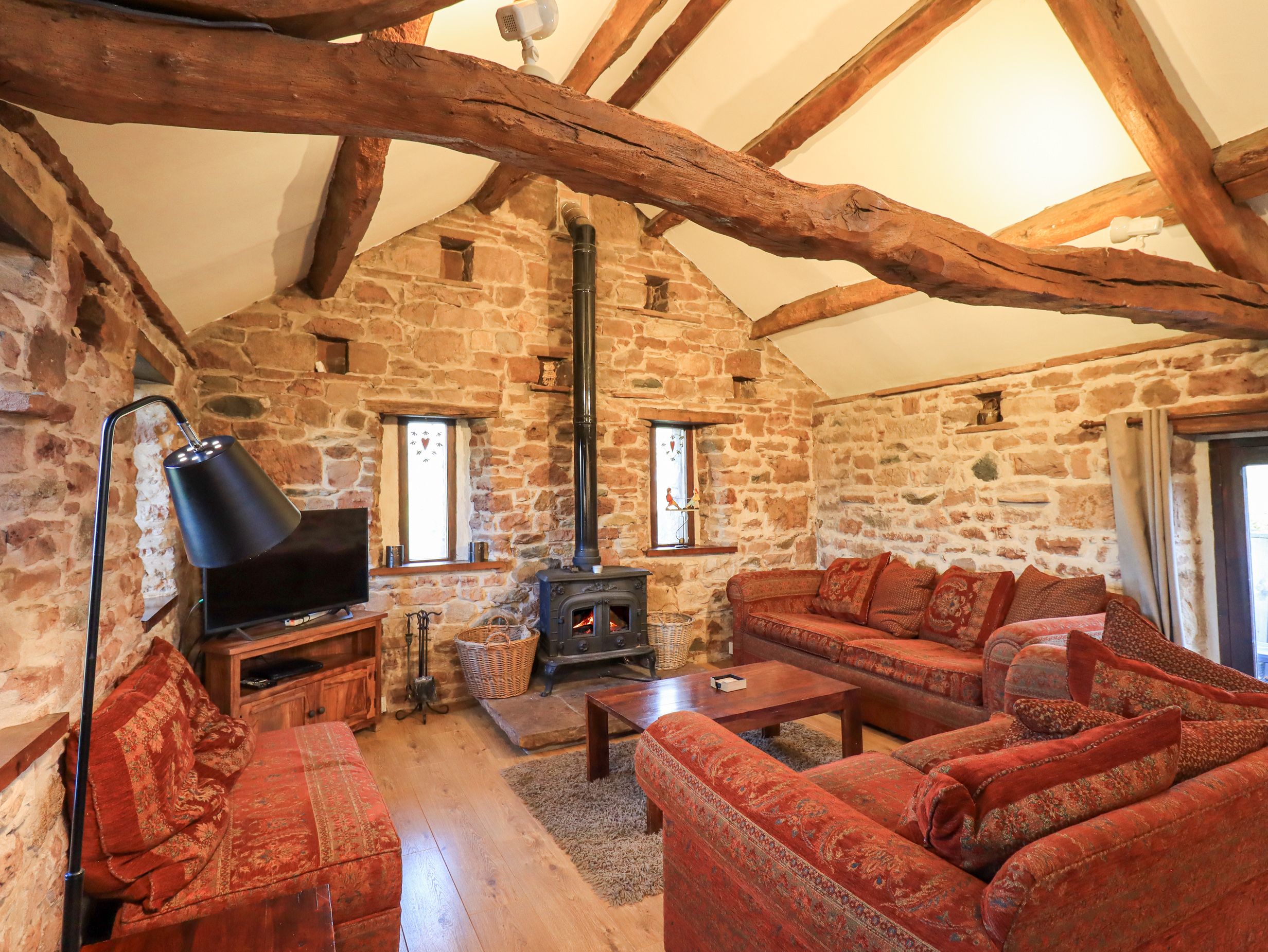 Amenities Central heating. Oven, hob, microwave, fridge/freezer, washing machine, tumble dryer, dishwasher. 2 x TVs, WiFi. Fuel and power inc. in rent. Bed linen and towels inc. in rent. Off-road parking available. Front courtyard with picnic bench and barbecue. Sun balcony off the first floor living area. One well-behaved pet welcome. Sorry, no smoking. One dog is welcome by arrangement for £20 per week. Dogs must be kept on a lead and not allowed to roam freely. Shop 5.4 miles, Pub 1.7 miles, Lake 7.3 miles. Note: Sloped ceilings in first-floor single bedroom, please take care. Note: This property cannot accept a Sunday changeover