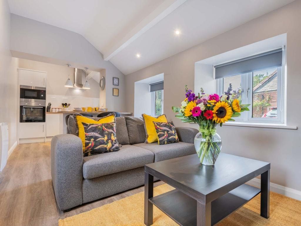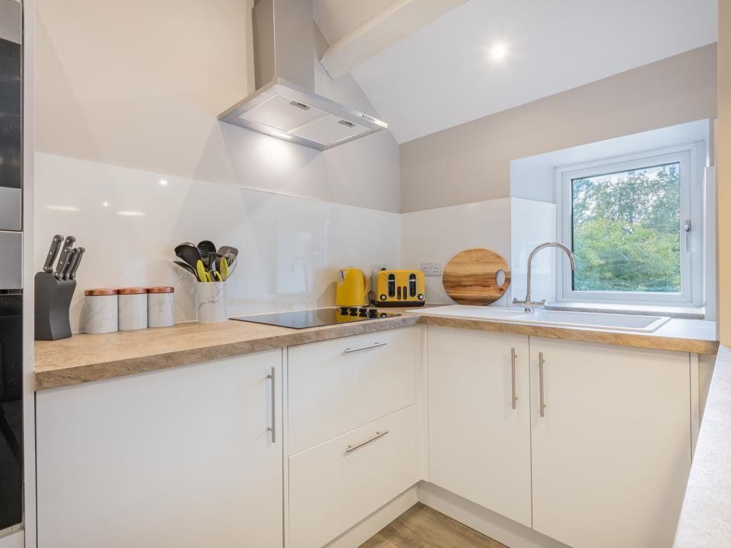An elegant and stylish home from home, the accommodation is all laid out on the ground floor. The open-plan kitchen area is well equipped and has a modern breakfast bar for dining; the living area at the other end of the room has an electric fire in a stunning original fireplace and there's also a separate cosy snug as well.