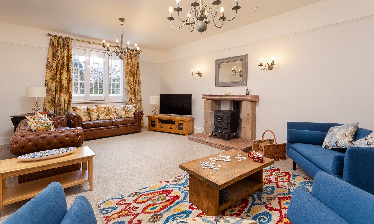 Accomodation Details Five bedrooms: 3 x king-size (two with en-suite shower rooms with basin and WC, one with en-suite bathroom with bath, seperate shower and basin and WC), 2 x twin, one ground floor with en-suite shower room with basin and WC(Please bear in mind there is one small step down to the ground floor bedroom). Kitchen. Boot room. Dining room. Sitting room with woodburning stove. Second sitting room / family dayroom with TV. Standard travel cot (no mattress or bedding provided)