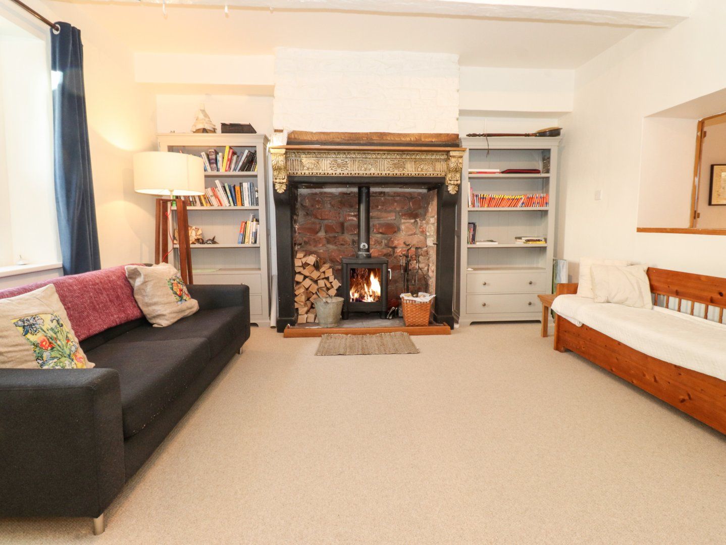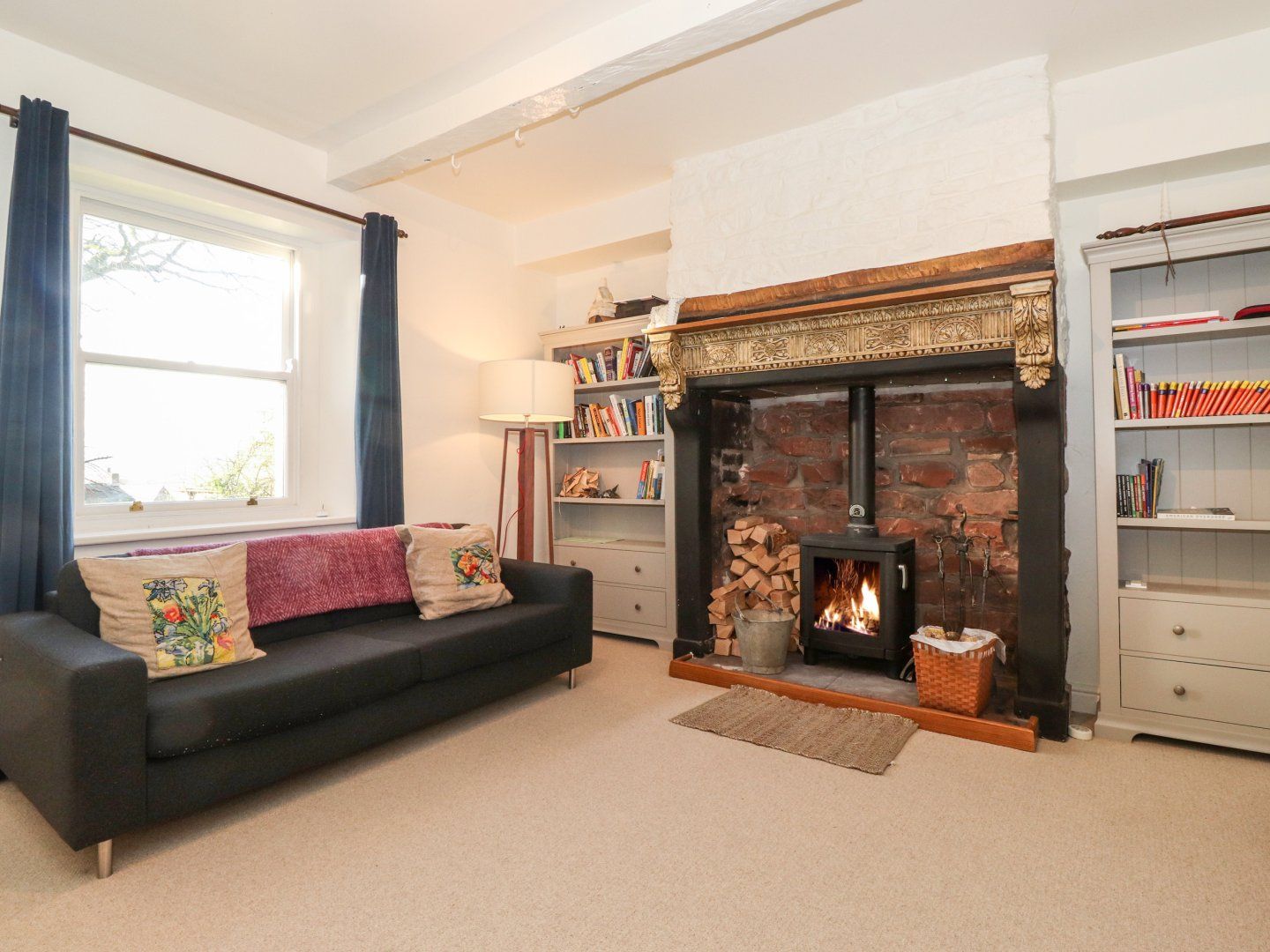 Accomodation Details Over three floors. Four bedrooms: 1 x king-size, 2 x double, 1 x second-floor twin with en-suite shower, basin and WC. Bathroom with bath, shower over, basin and WC. Downstairs WC. Kitchen/diner. Utility. Sitting room with woodburning stove. Snug. Study