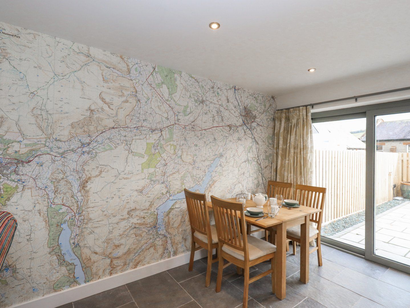 Accomodation Details All-ground-floor. Two bedrooms: 1 x king-size, 1 x twin. Shower room with walk-in shower, basin, heated towel rail and WC. Open-plan living space with kitchen, Electric oven and hob, microwave, fridge/freezer, kettle, toaster, dishwasher, washing Machine. Dining area and sitting area with woodburning stove