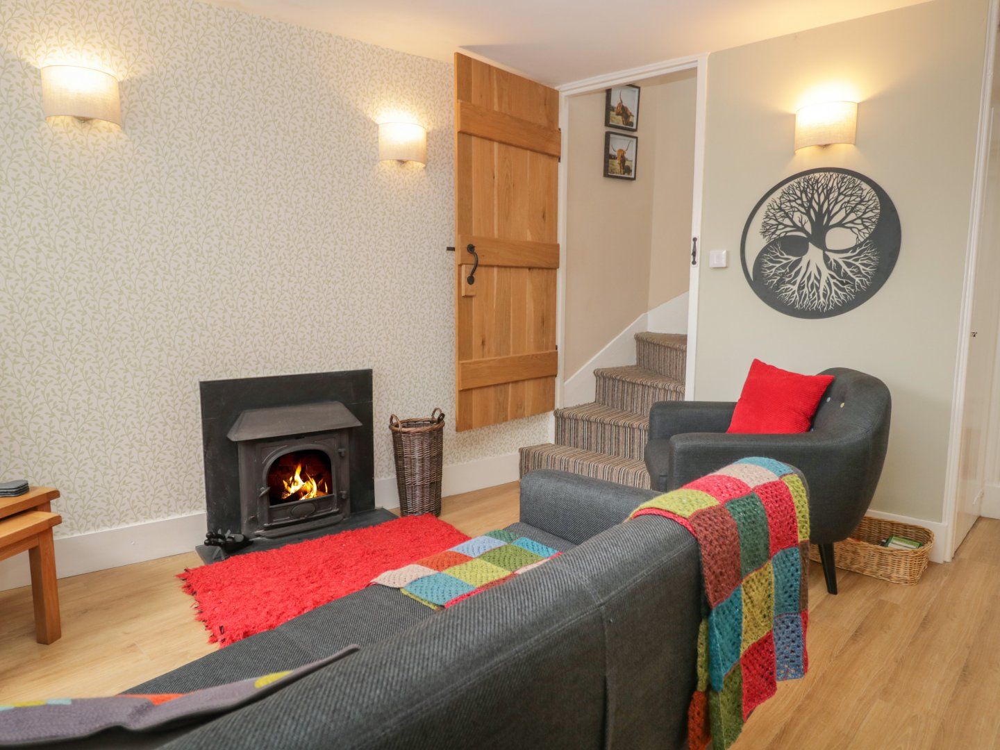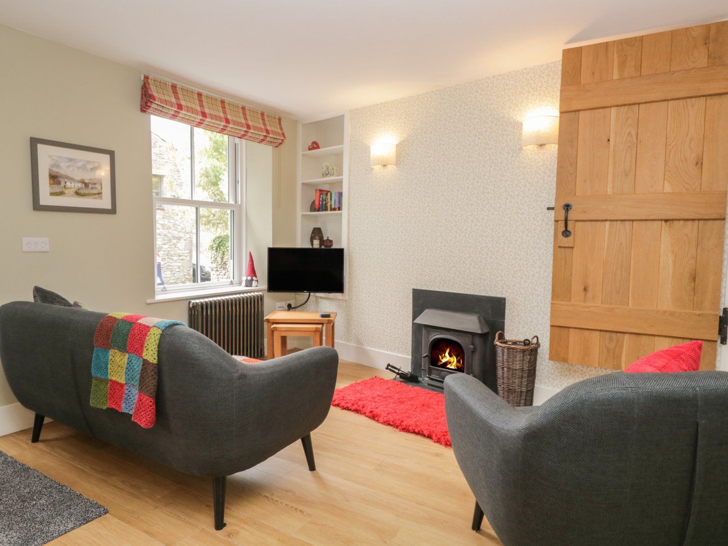 Amenities Gas central heating. Electric oven and gas hob, microwave, fridge/freezer, dishwasher. 2 x Smart TV's, WiFi. Fuel, power and starter pack for woodburning stove inc. in rent. Bed linen and towels inc. in rent. A parking permit for nearby car parks (3 minute walk) is provided for one car, and on-street parking is also available nearby. Bike storage in yard area. Outdoor seating area with two-chair bistro set. One well-behaved pet welcome. Sorry, no smoking. Shop and pub 0.1 miles. Note: Check-in from 3pm, check-out by 9.30am. Note: Maximum occupancy is four people.