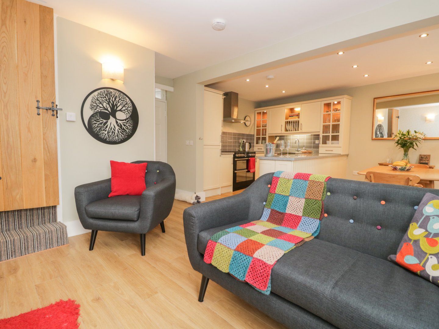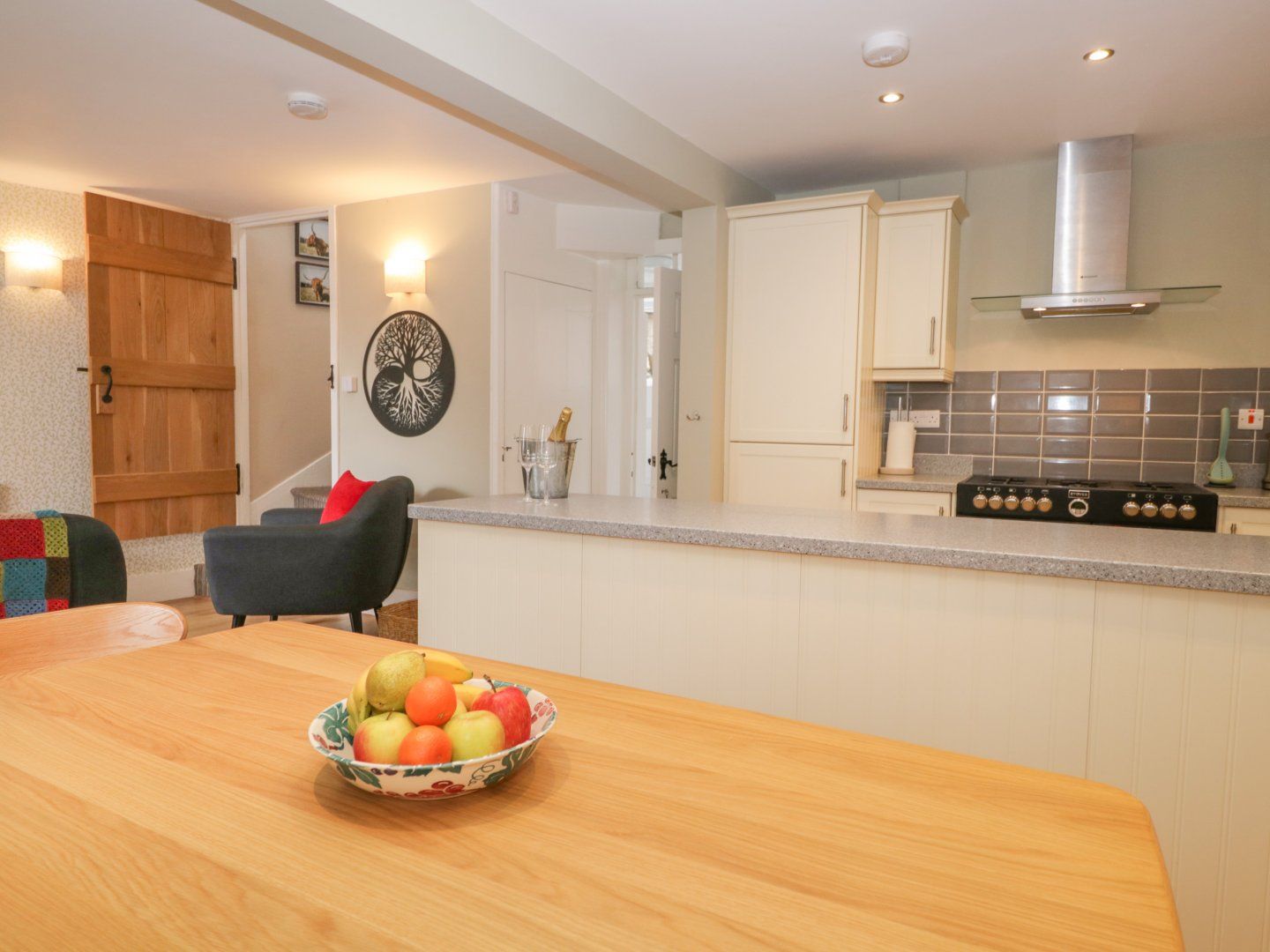 Accomodation Details Over three floors. Three bedrooms: 1 x king-size with Smart TV and en-suite walk-in shower, basin and WC, 1 x second-floor king-size, 1 x second-floor double. Bathroom with roll top bath, walk-in shower, basin, heated towel rail and WC. Cloakroom with basin and WC. Open-plan living space with kitchen, dining area and sitting area with woodburning stove. Utility area with washer/dryer