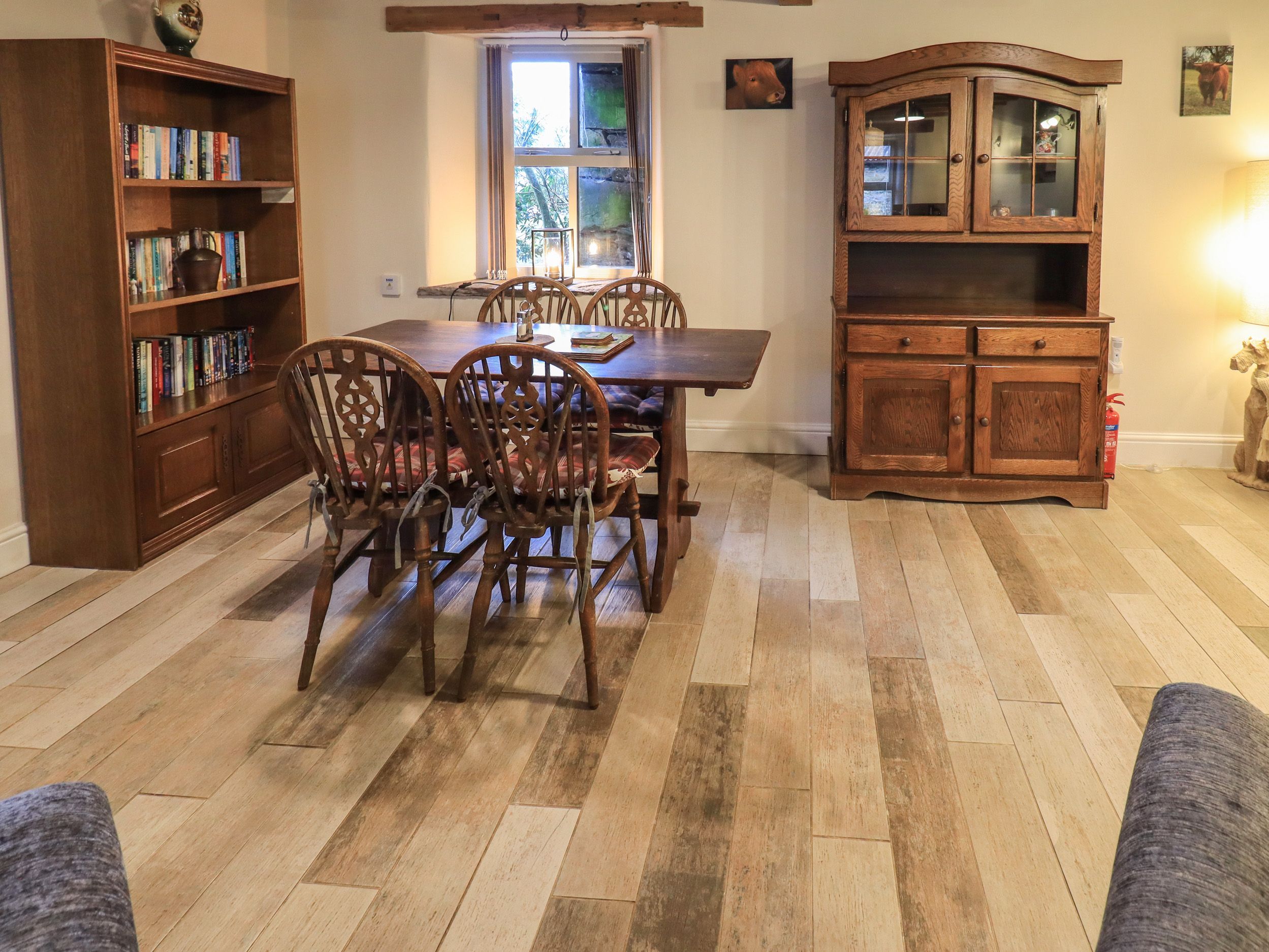 Gas underfloor heating with electric stove. Electric oven and hob, microwave, fridge, a washing/drying room complete with dog shower is provided (shared with one other cottage on site), dishwasher, Smart TV with Freeview, DVD, WiFi. Fuel and power incl in rent. Bed linen and towels inc. in rent. 1 Cot and 1 highchair available on request. Off-road parking for two cars. Patio with furniture. Two well-behaved dogs welcome. Strictly no smoking. Shops and pub 1 mile. Note: The owners live in the farmhouse some 30 yards from the property. The main road is 20 yards from the front door, a quiet road but expect a little noise at peak times. The cottage is on the owners small holding and therefore friendly farm dogs and free range chickens roaming freely. Please note: There is a 7kw charging point for electrical cars available - There is a supplement charge which will be paid directly to the owner if this product is used.