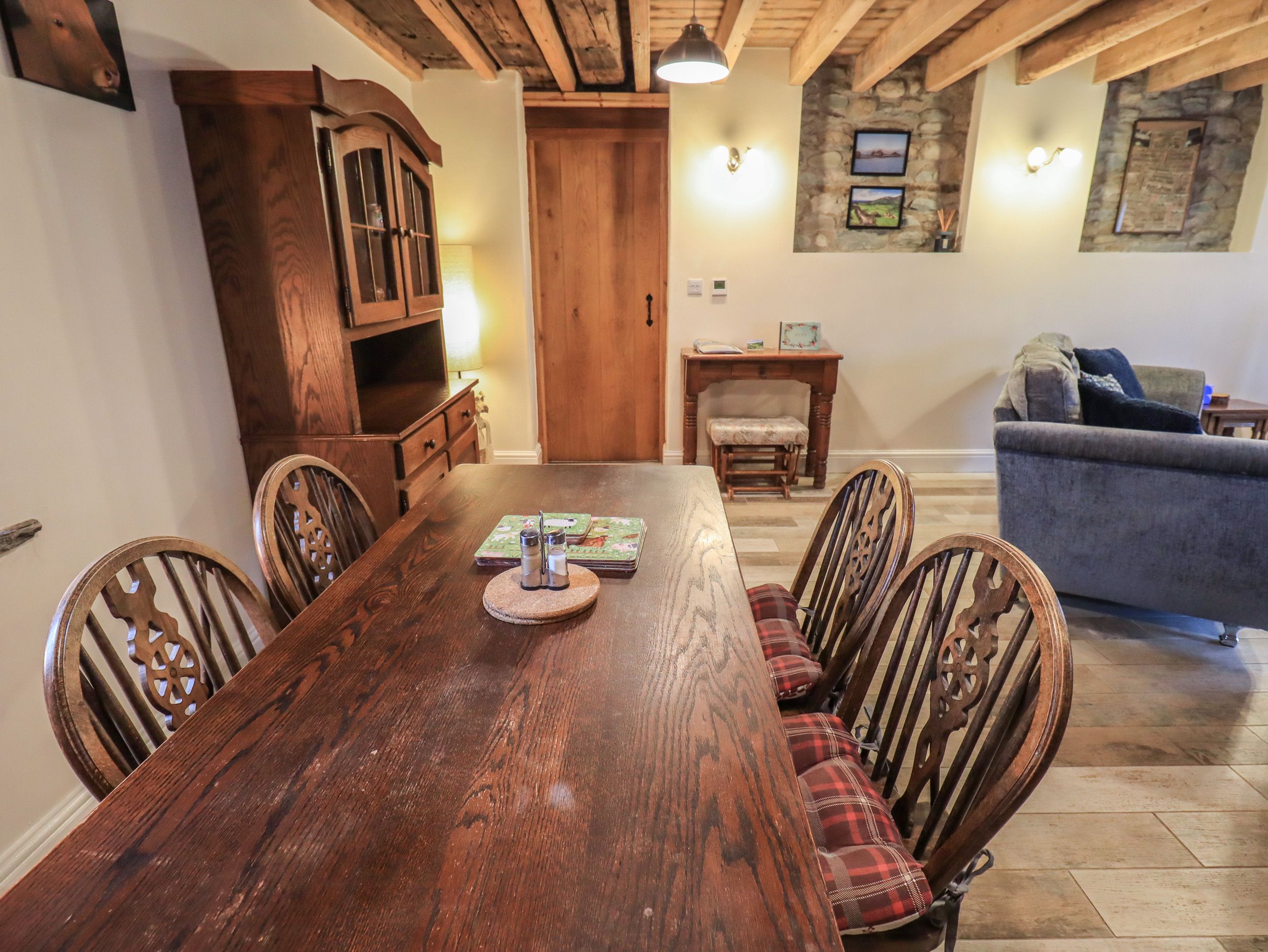 Two bedrooms: 2 x super king-size doubles (zip/link, can be twins on request) with en-suite shower, basin and WC. Kitchen. Sitting room with dining area. External washing room.