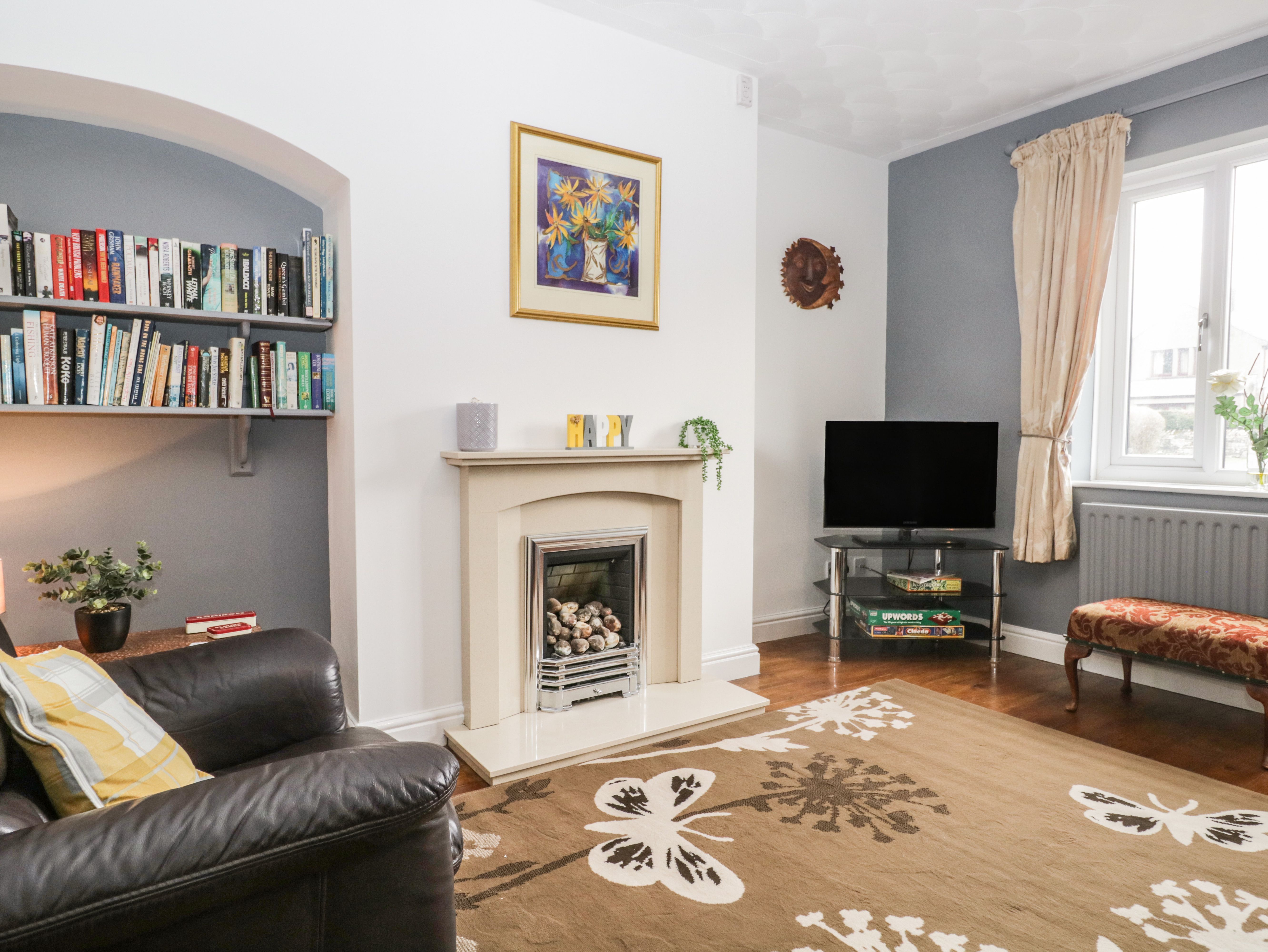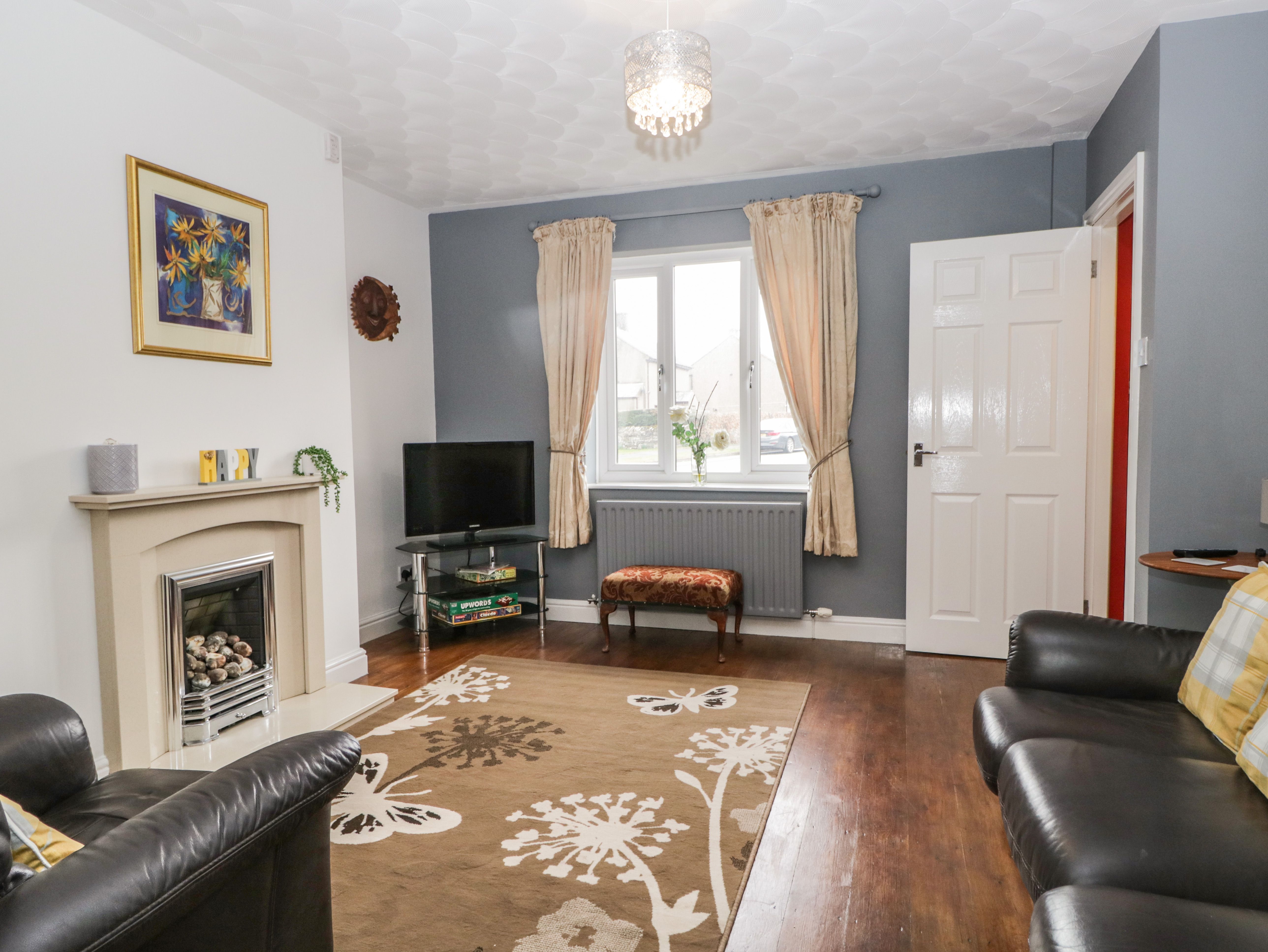 Amenities Gas central heating with gas fire. Electric oven and hob, kettle, toaster, microwave, fridge with ice box. TV, WiFI. Fuel and power inc. in rent. Bed linen and towels inc. in rent. Highchair and travel cot available. Off-road parking for 1 car and additional roadside parking available on a first-come, first-served basis. Small enclosed front garden. One well-behaved dog welcome at additional £20.00 fee per holiday. No smoking. Shop 0.3 miles, pub 0.1 mile
