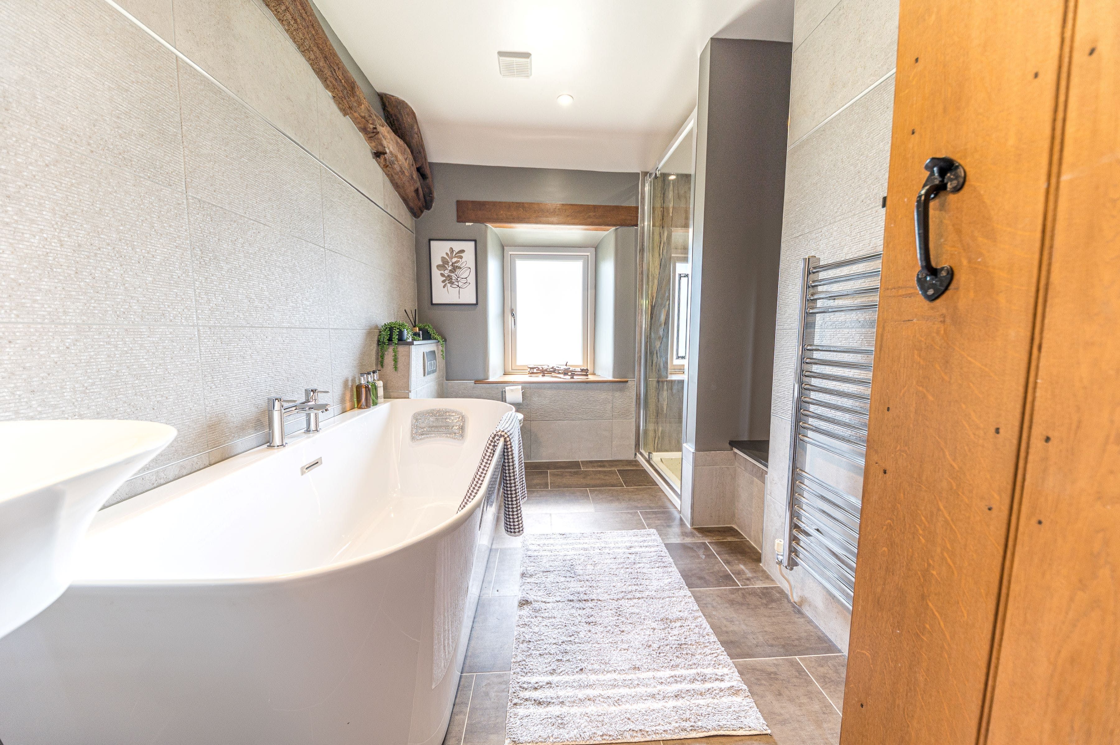 Step inside, and you’ll find the decor is just as warm and homely – perfect for a winter evening snuggled up by the log burner. In addition to the open-plan dining and kitchen area, a lovely setting for a Sunday roast with the family, is the snug room. Part of the original farmhouse, the historic features and beams have been restored to create a charming setting. Slide your slippers off and tuck your feet under a blanket for a relaxing evening with a good book.