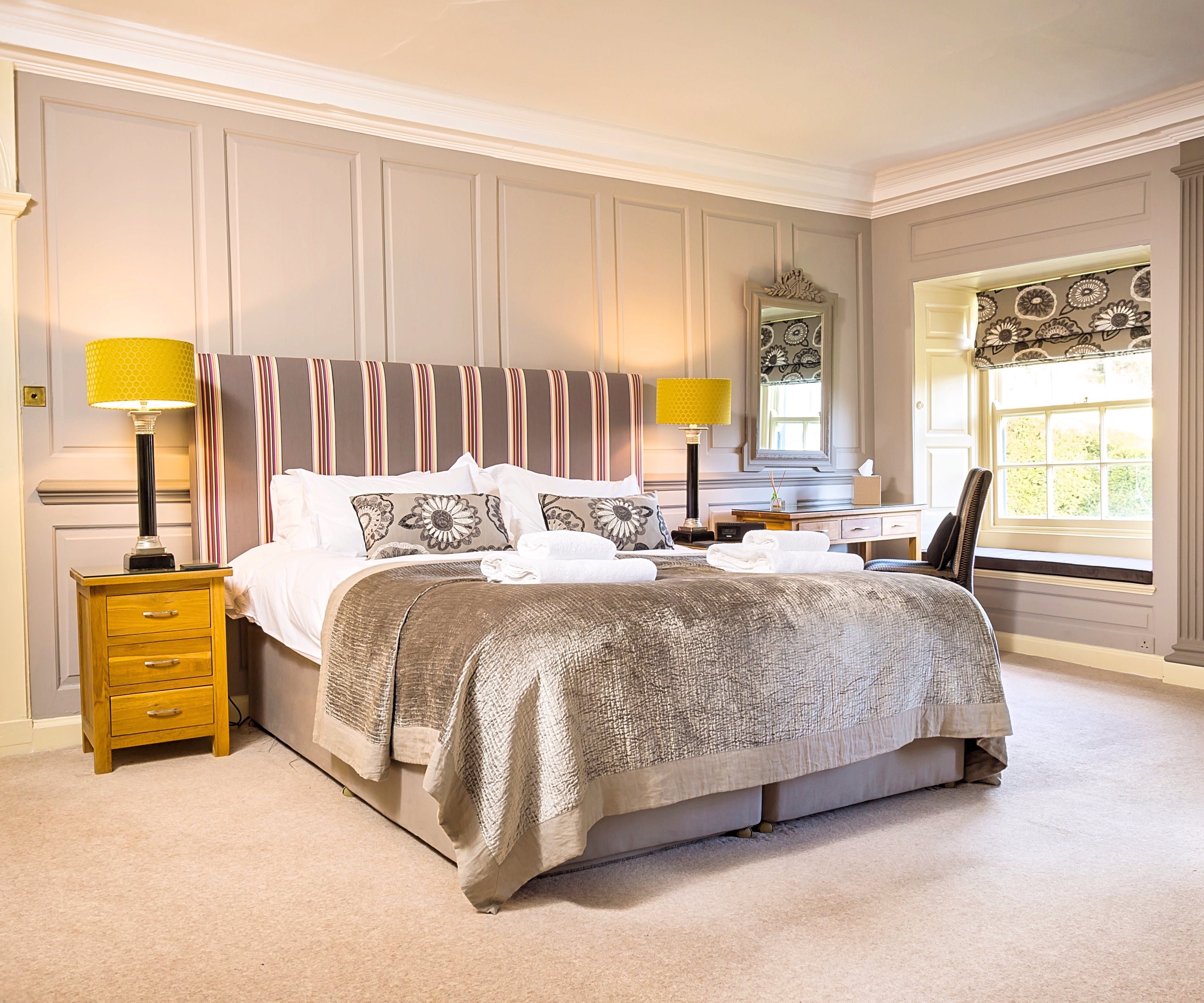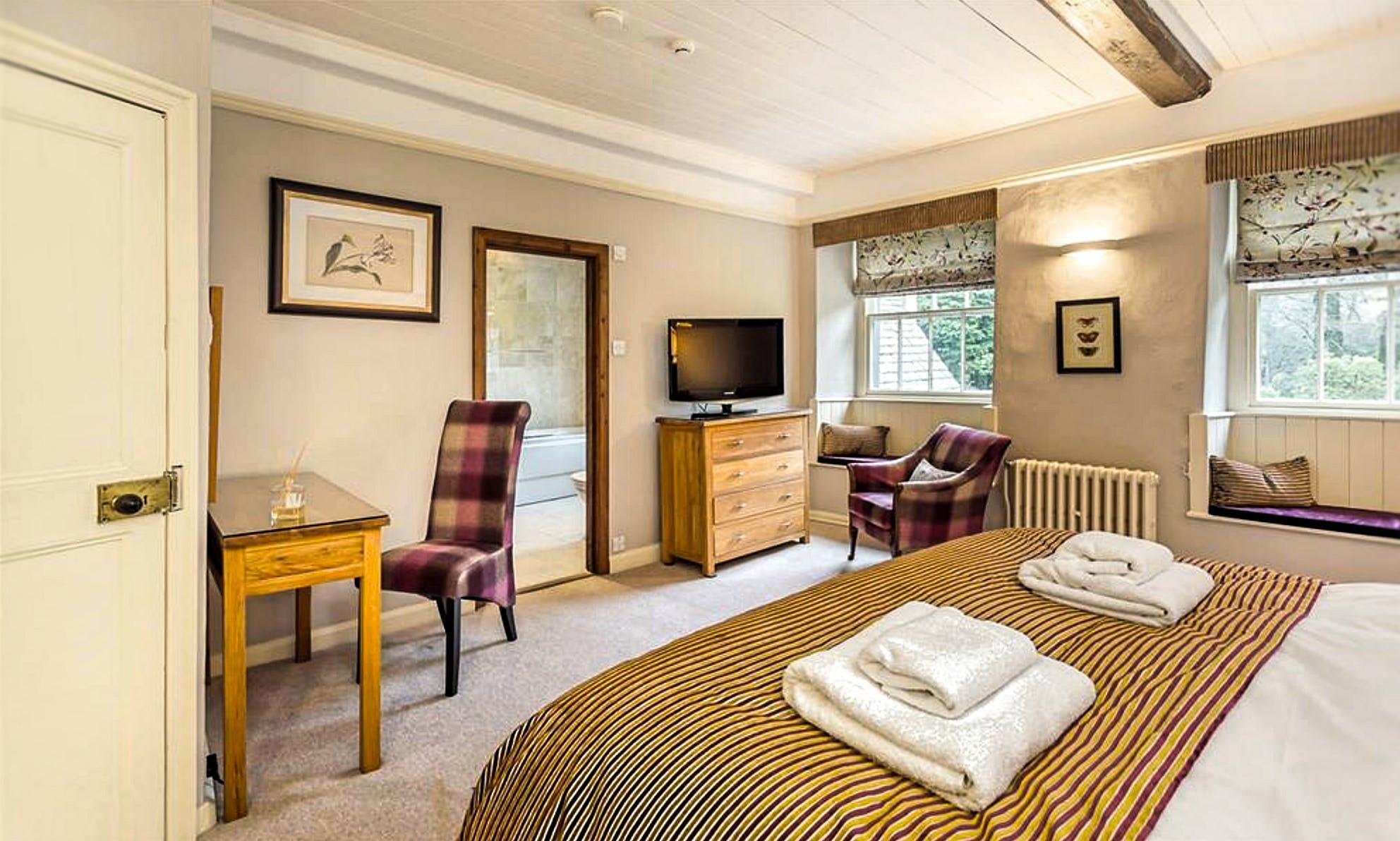 Like many properties in the local area, there's a real sense of heritage and time-honoured homeliness in the interior, as seen with the wooden ceiling beams, grand dining room and lavish living area complete with a wood-burning fireplace and walls full of historic artwork.