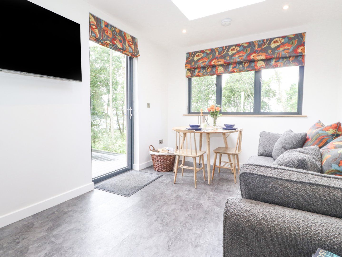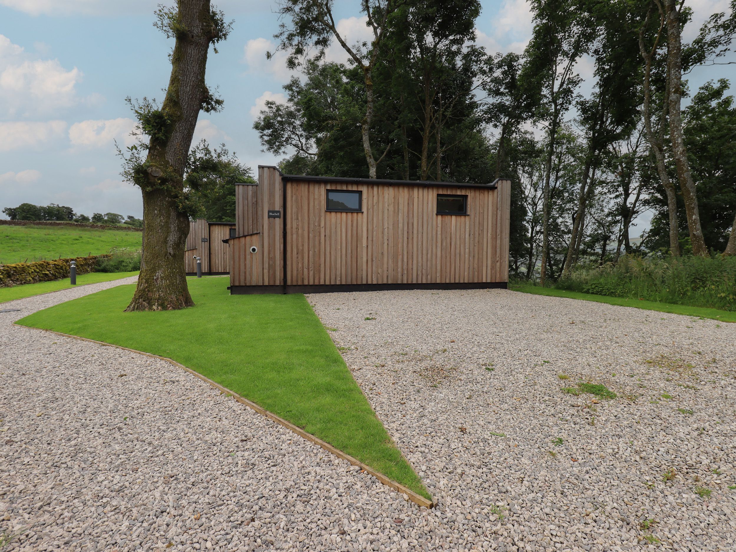 This single-storey cabin consists of an open-plan living space with a kitchen area with an electric oven and hob, microwave, fridge with an ice box, dining seating for two and a sitting area with Smart TV. There is a super-king-size bed, along with a shower room. Outside, there is off-road parking for one car and a private garden with decking, furniture, and a wood-fired hot tub, and a communal courtyard with a fire pit. WiFi, fuel, power, bed linen and towels are all included in the price. One well-behaved dog welcomed, but sorry, no smoking permitted. Bluebell Cabin makes a charming base for exploring the countryside of Cumbria. Note: Complimentary Bath House toiletries provided. Note: There is a step up to the entrance. Note: The garden is not enclosed. Note: Check-in from 4pm, check-out by 10am.