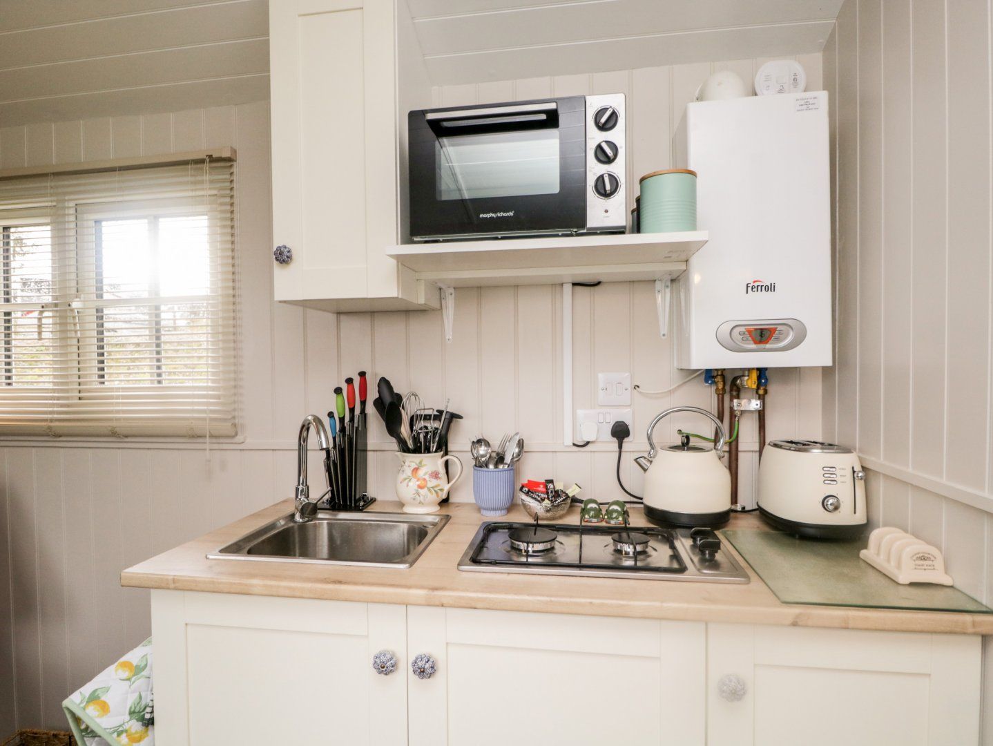 Holiday home Seashore Shepherds Hut @ Moat Farm is a single-storey, open-plan hut resting in Aldingham near Dalton-In-Furness, Cumbria. Hosting an open-plan living space with a double bed, including a shower room, this property can sleep up to two guests. The open-plan living space also has a kitchen/diner. Outside there is off-road parking for one car and a lawn with furniture, and fire pit. Seashore Shepherds Hut @ Moat Farm overlooks the beautiful Morecambe Bay for a romantic getaway for two.