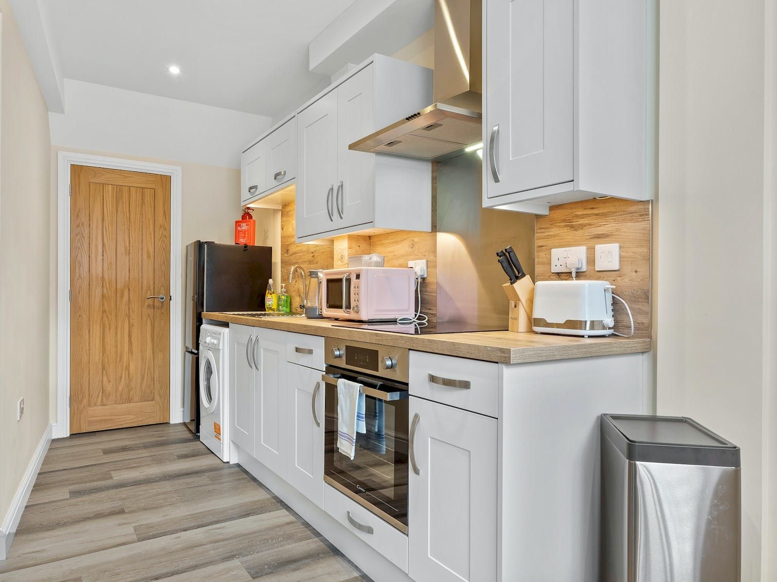 Once a shoe shop, this home has been converted into an excellent two-story apartment. It’s in the heart of Ulverston so you can easily explore the Lake District and Cumbria. Keen hikers might want to tackle Scafell Pike, which is less than an hour away, and Lake Windermere can be reached in half an hour. The apartment is a fuss-free base, equipped with everything you need for a comfortable break. There’s a petite desk for those needing to work during their stay.