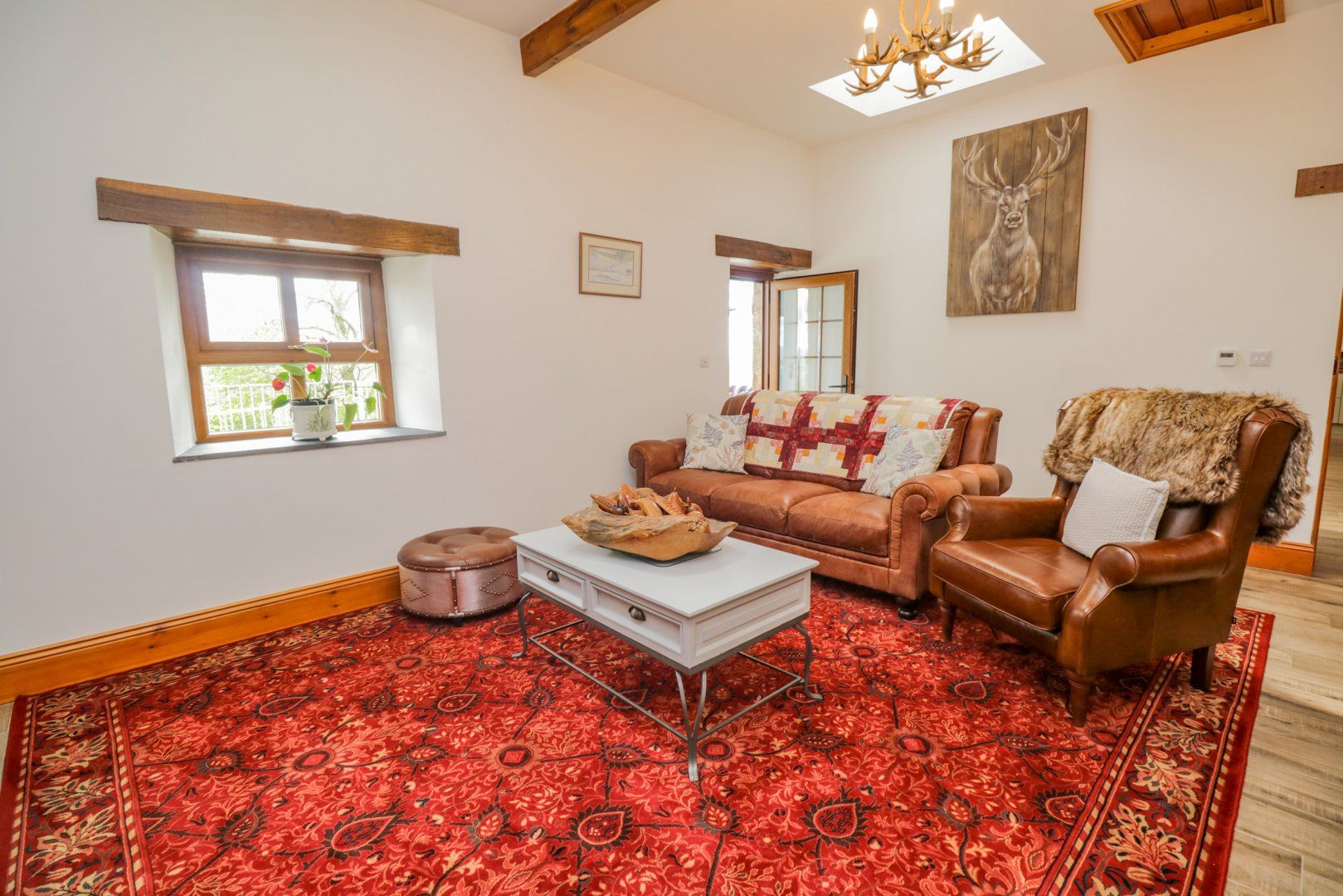 Accomodation Details Single-storey. Two bedrooms: 1 x double with en-suite shower, basin and WC, 1 x twin and double bed. Wet-room with shower, basin, heated towel rail and raised WC. Open-plan living space with kitchen, dining and sitting area with open-fire. Utility. Sitting room. Sun room