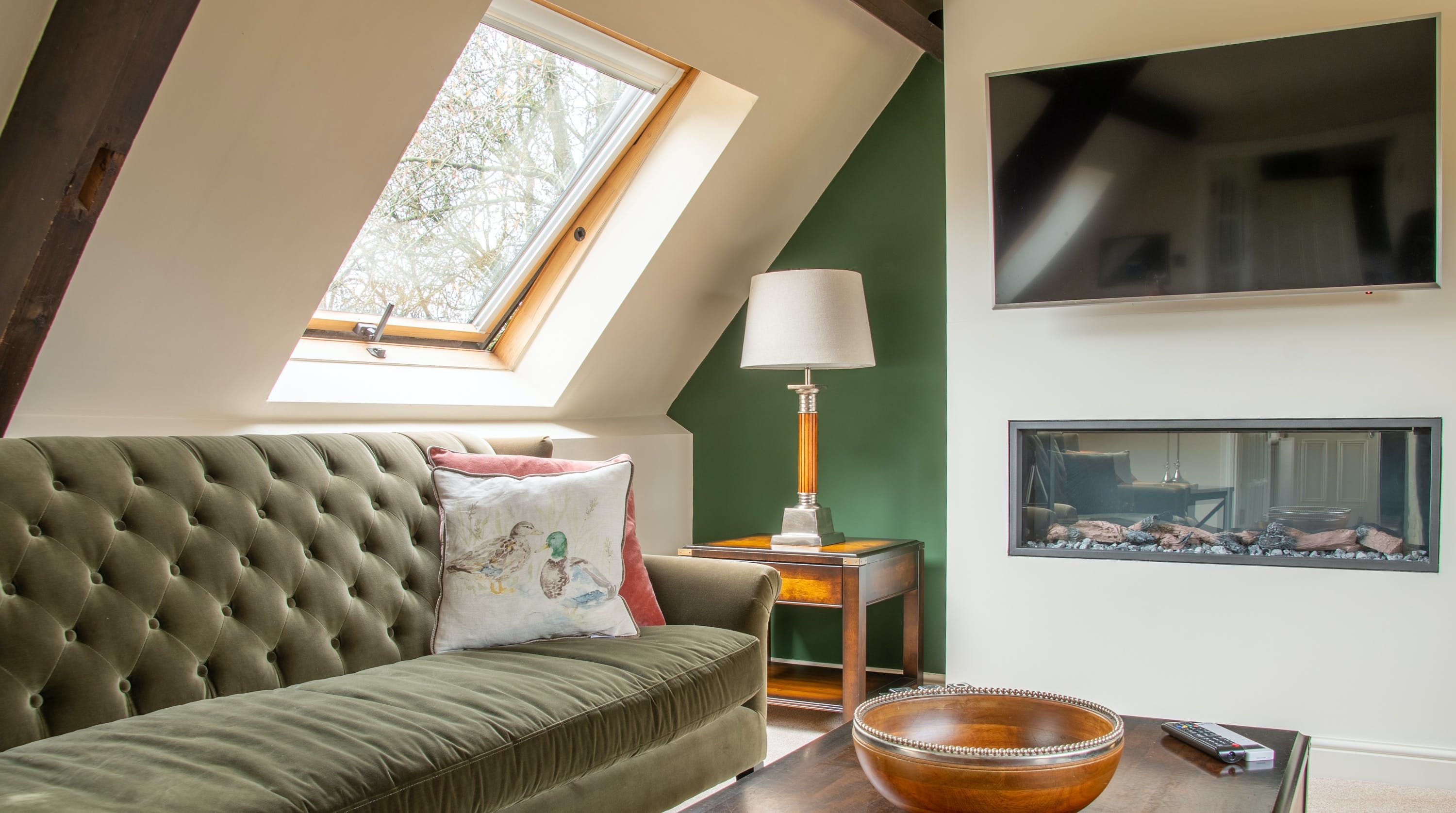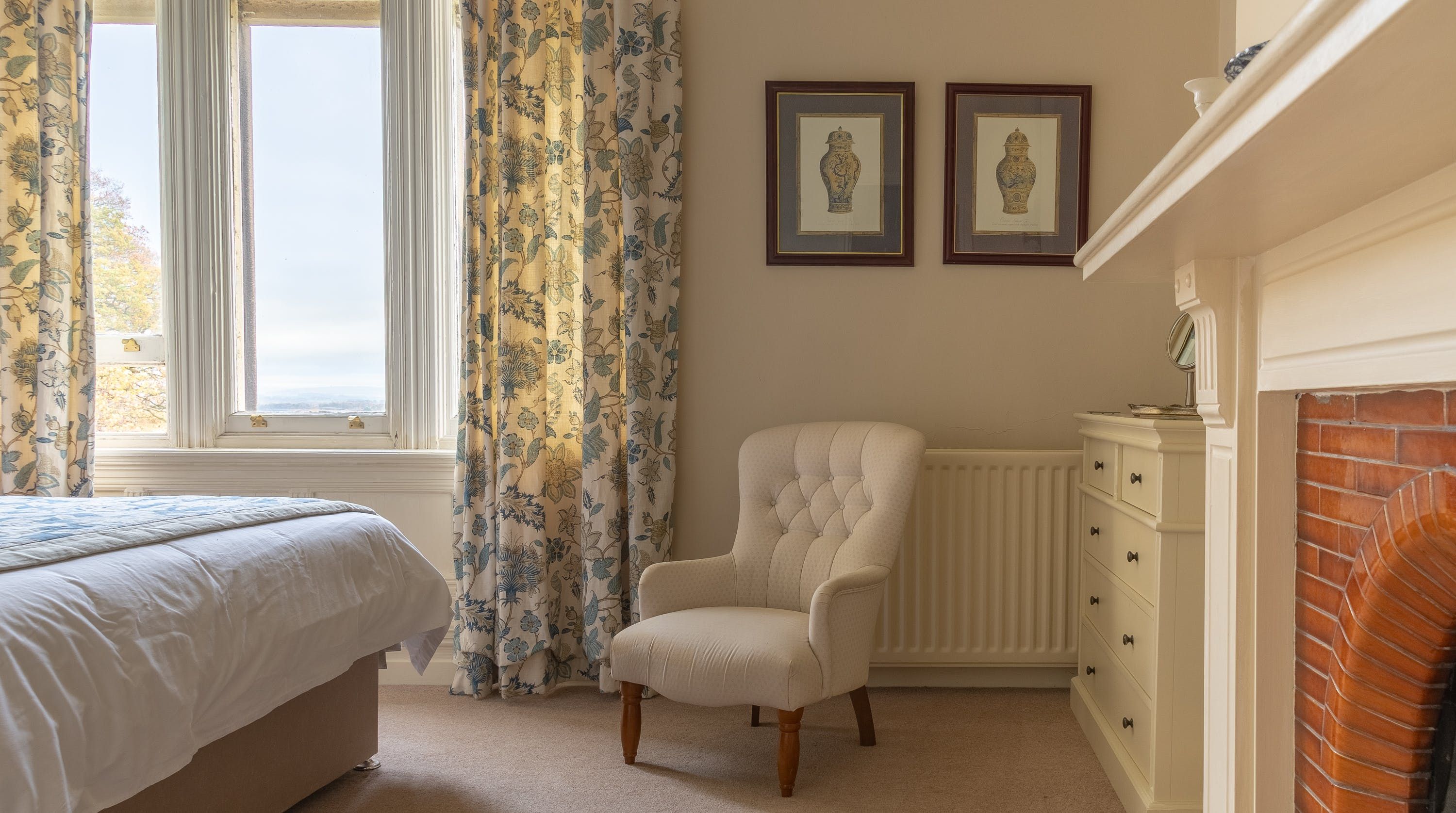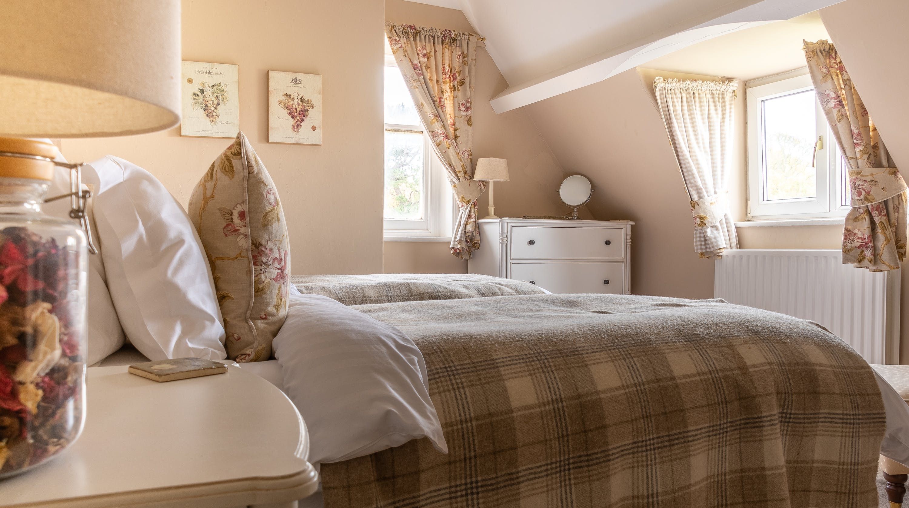 Nestled amongst the east wing of a sprawling estate, this maisonette has plenty of room for families. Cosy and inviting with wooden beams and angled ceilings, this home is sure to give you that warm and fuzzy feeling when you arrive. Snuggle up on the Chesterfield sofas in front of the electric fire while your favourite movie plays on the DVD player. Rustle up delicious meals in the stylish kitchen, then gather around the dining table for family feasts, sharing stories and bottles of bubbly straight out of the wine fridge. All the bedrooms are roomy and traditionally styled, and with private en-suites, nobody will have to queue for the loo. But our favourite spot is the garden. After an alfresco lunch in the courtyard, wander the several acres of grounds and woodlands. The views are absolutely stunning – they stretch towards River Eden and to the Castle Carrock Fells, promising you a slice of that peaceful rural life. Keen cyclists can roam the country lanes by bike or just stroll along the river – viaduct towers, hidden caves and waterfalls are just a few things you'll discover. When your stomach starts rumbling, walk ten minutes into town for local ales and mouth-watering fare at the village pub. Both Carlisle and the Lake District are easily reached by car if you fancy a day out, though we're quite happy to while away our afternoons in Wetheral, exploring the countryside.