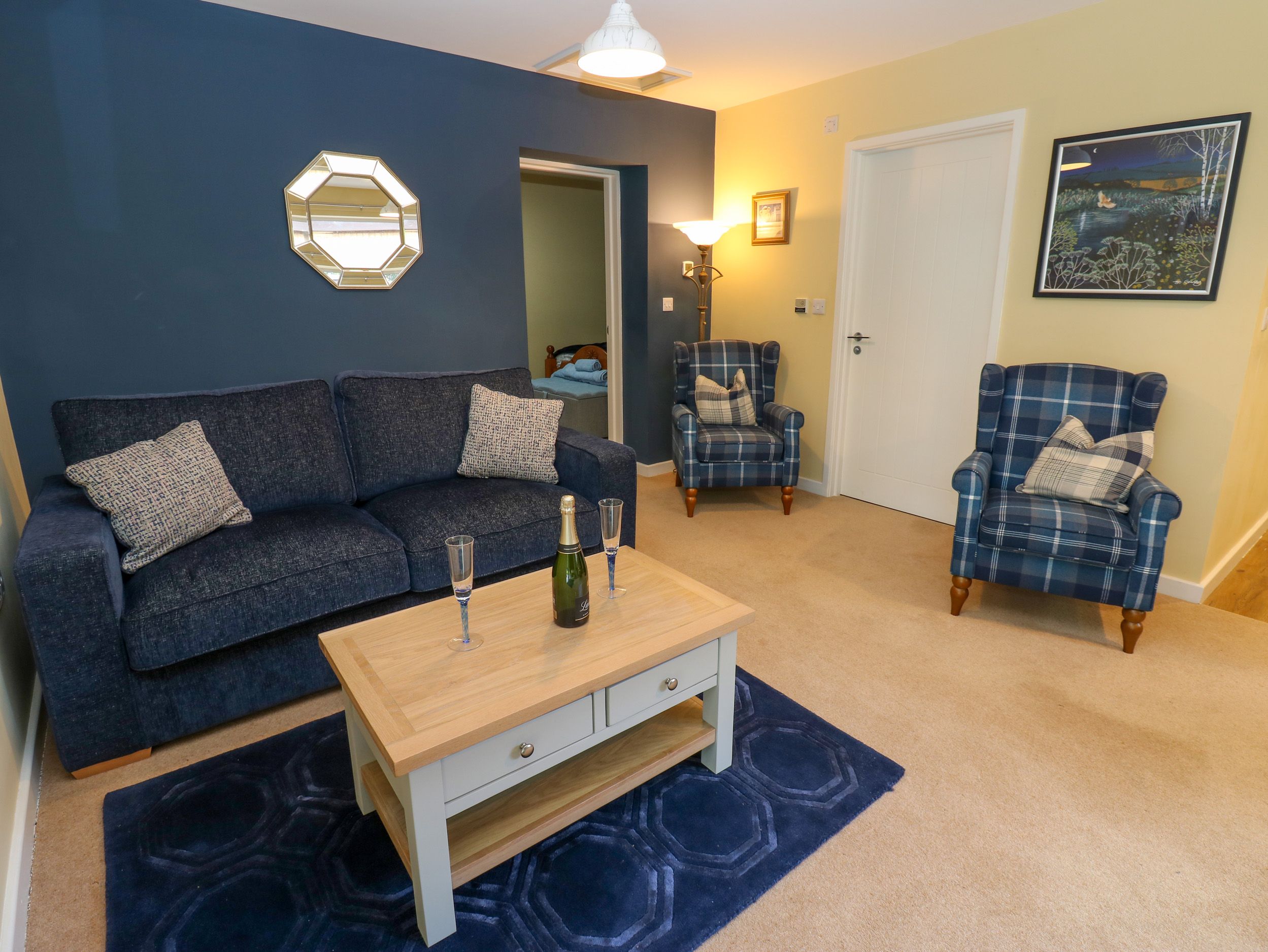Accomodation Details Single-storey. One double bedroom. Shower room with walk-in shower, basin, WC. Open-plan living space with kitchen, dining area and sitting area