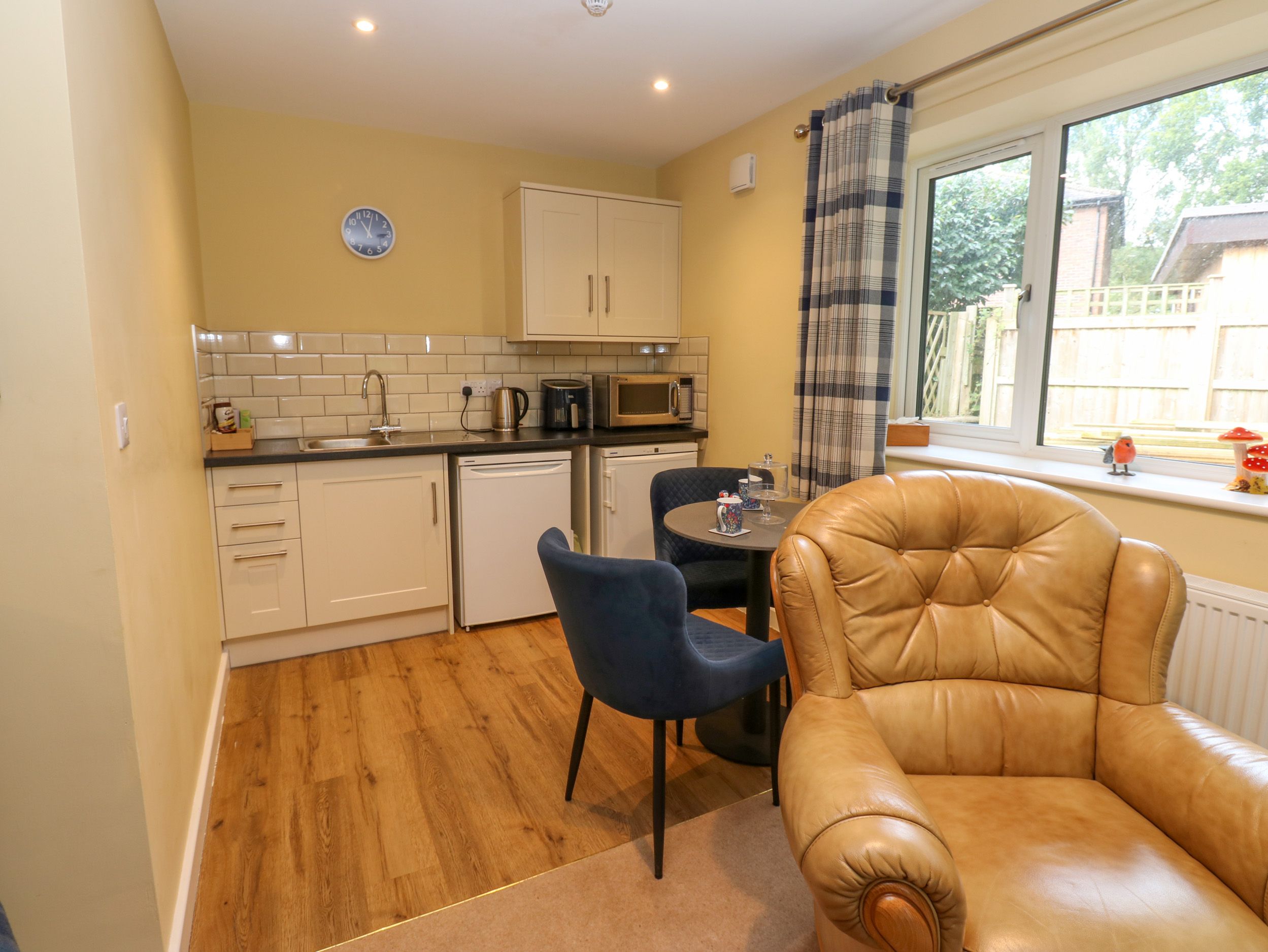 Amenities Gas central heating. Air fryer, microwave, fridge, freezer, kettle, toaster (there is no oven or hob). Smart TV, WiFi. Fuel and power inc. in rent. Bed linen and towels inc. in rent. Off-road parking for 2 cars. EV charging is available for an additional £20. Enclosed rear garden with lawn, patio, and furniture. Sorry, no pets and no smoking. Shop and pub 0.6 miles. Note: This property does not have an oven or hob. Note: There is a Good Housekeeping Bond of £150