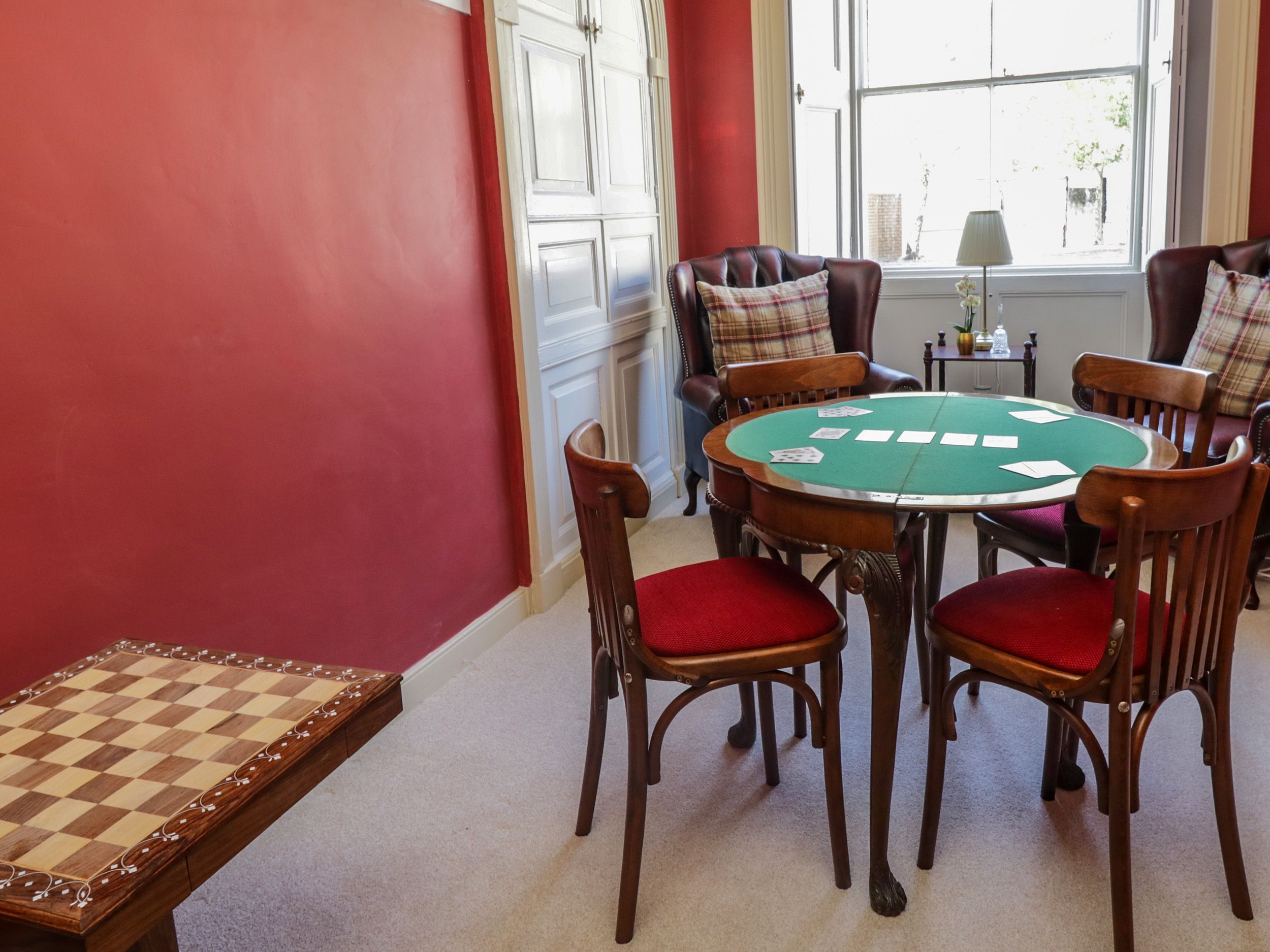 Over three floors. Eight bedrooms, five bathrooms: 1 x super-king-size with freestanding bath, 2 x super-king-size, 1 x ground-floor double with en-suite walk-in shower, basin and WC, 3 x second-floor twin,1 x second-floor single. Cloakroom. Kitchen/diner, electric oven and hob, microwave, fridge/freezer, washing machine, tumble dryer and two dishwashers. Dining room, sitting room, snug