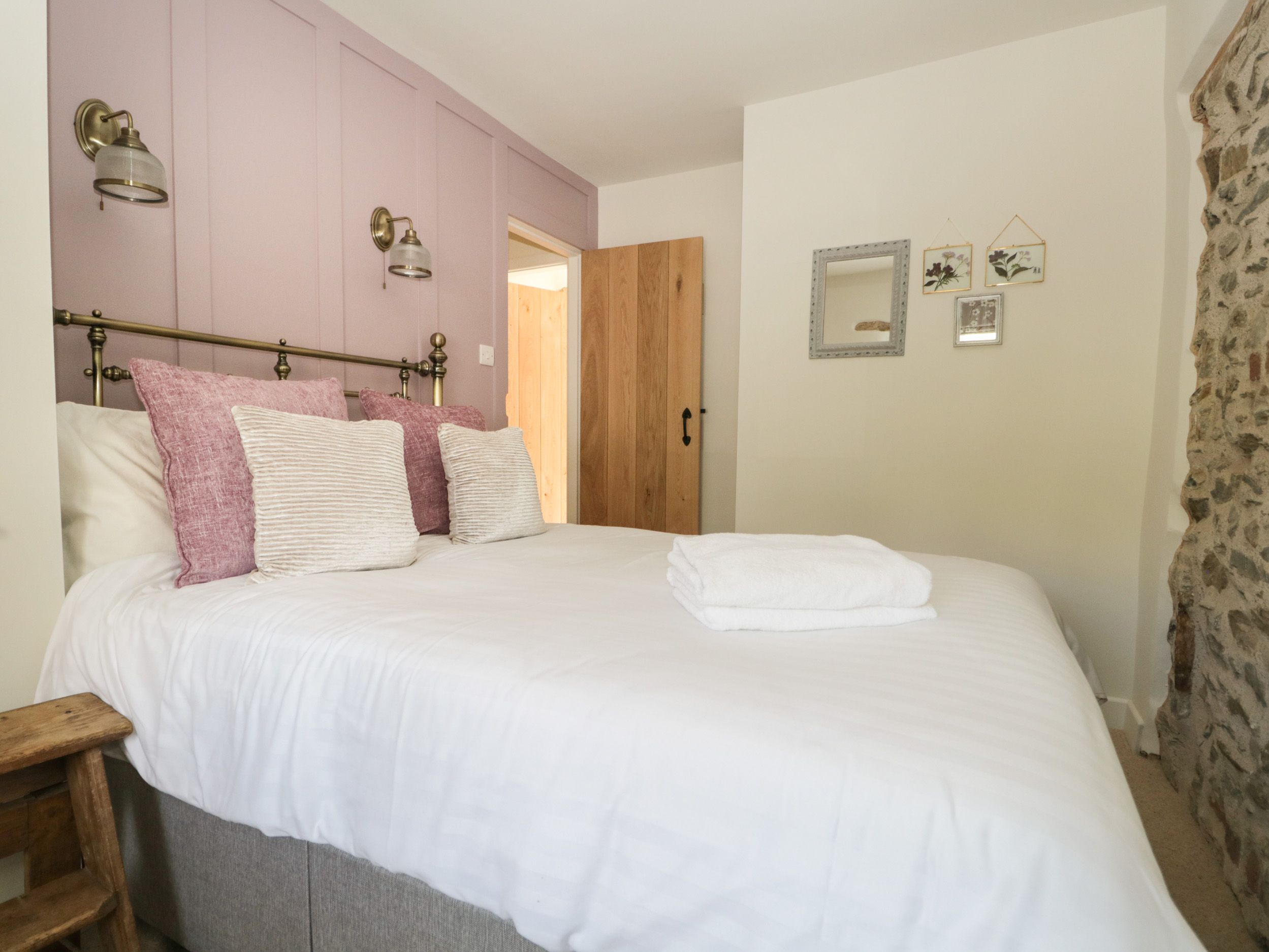 Accomodation Details Three bedrooms: 1 x Twin with (zip/link, can be super-king-size on request), 1 x king-size with en-suite walk-in shower, basin, heated towel rail and WC, 1 x double. Bathroom with bath, shower over, basin, heated towel rail and WC. Slate floor hall/cloakroom with separate downstairs WC with basin. Kitchen/diner with extendable table. Sitting room with woodburning stove.