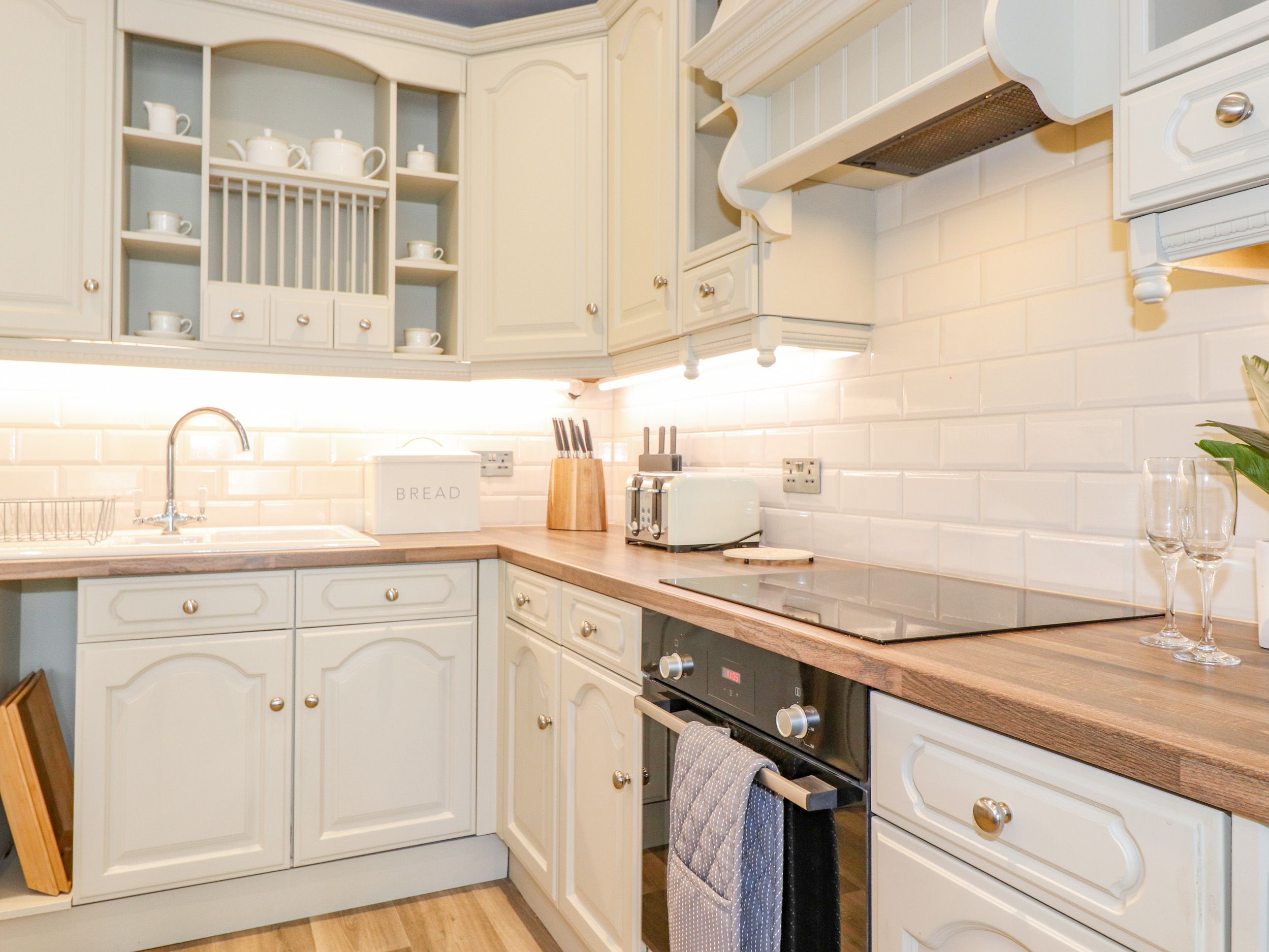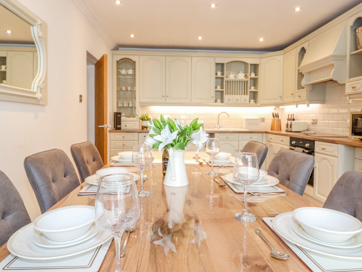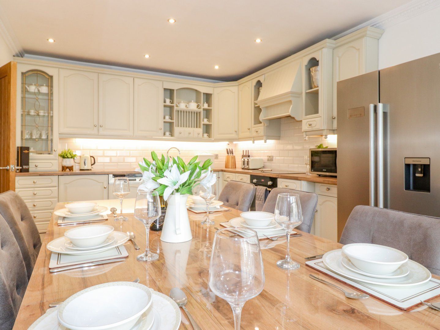Accomodation Details Highly Commended for a Four Star property. Three bedrooms: 1 x ground-floor king-size with TV, walk-in wardrobe, and en-suite walk-in shower, basin, heated towel rail, and WC, 1 x double with TV and en-suite walk-in shower, basin, heated towel rail, and WC, 1 x bunk with TV and en-suite walk-in shower, basin, heated towel rail, and WC. Kitchen/diner. Utility with washer/dryer. First-floor sitting room with virtual flame electric fire