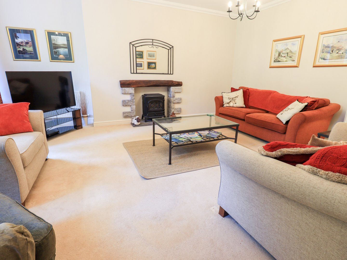 Amenities Gas central heating. Double electric oven, gas hob, microwave, fridge/freezer, dishwasher. Smart TV, TV, WiFi. Fuel and power inc. in rent. Bed linen and towels inc. in rent. Private parking for 3 cars. Private rear garden with patio, furniture and storage plus access to an additional shared lawn and other outdoor spaces. Sorry, no smoking. Shop 1.1 miles, pub 1.2 miles, Lake Windermere 0.3 miles. Note: Check-in from 4pm, check-out by 10am