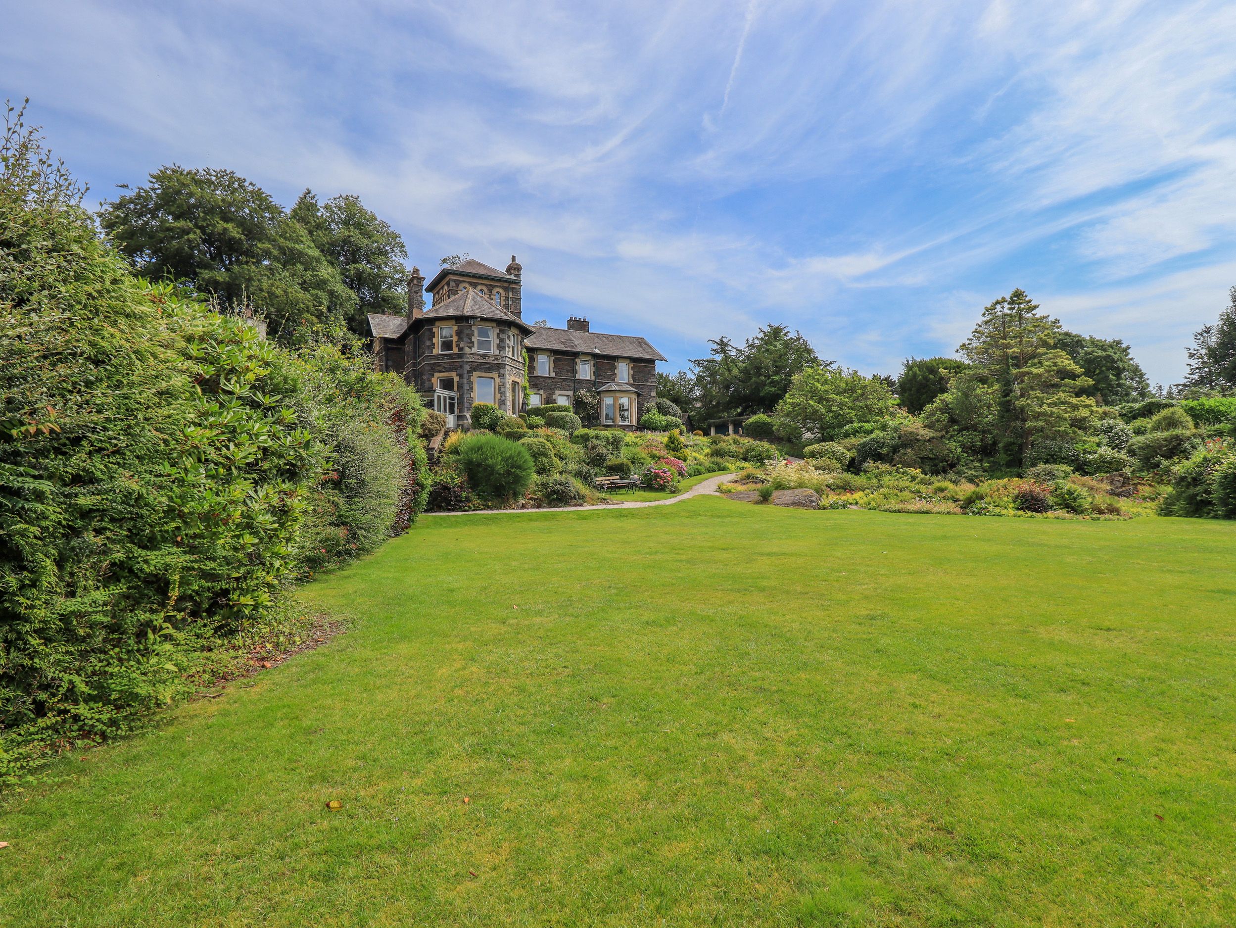 Accomodation Details Sleeps 12: Large Victorian House with original features, spacious porch and hall, Tower room / original observatory, now a stunning bedroom complete with slipper bath. 6 Bedrooms, some with Four poster beds. 1 super king size, 3 king size, 2 twin all ensuite with 6 luxurious designer bathrooms with invigorating showers roll top and slipper baths, Oak panelled dining room, drawing room with open fire, conservatory, Fabulous kitchen with utility. Ground floor cloakroom with WC and basin. Breathtaking lake mountain views