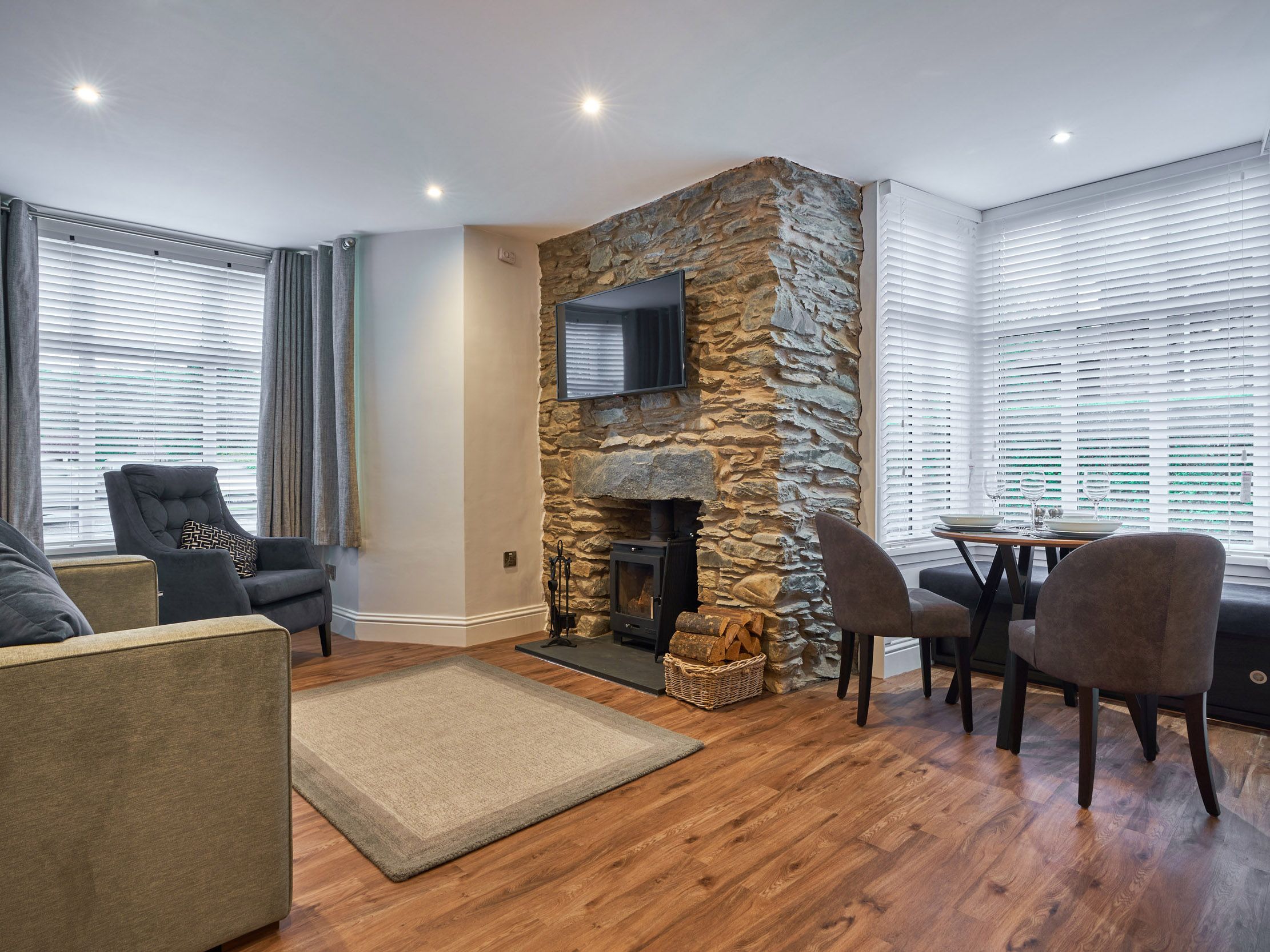 Holiday home Lower Sheriff's Place is a delightful ground-floor apartment resting in Windermere, Cumbria. Hosting one king-size bedroom with Smart TV and en-suite shower room, this property can sleep up to two guests. There is also an open-plan living space with kitchen, dining area and sitting area with woodburning stove. Outside there is off-road parking for one car and an enclosed courtyard with furniture. For a romantic break in the Lakes look no further than Lower Sherrifs Place.
