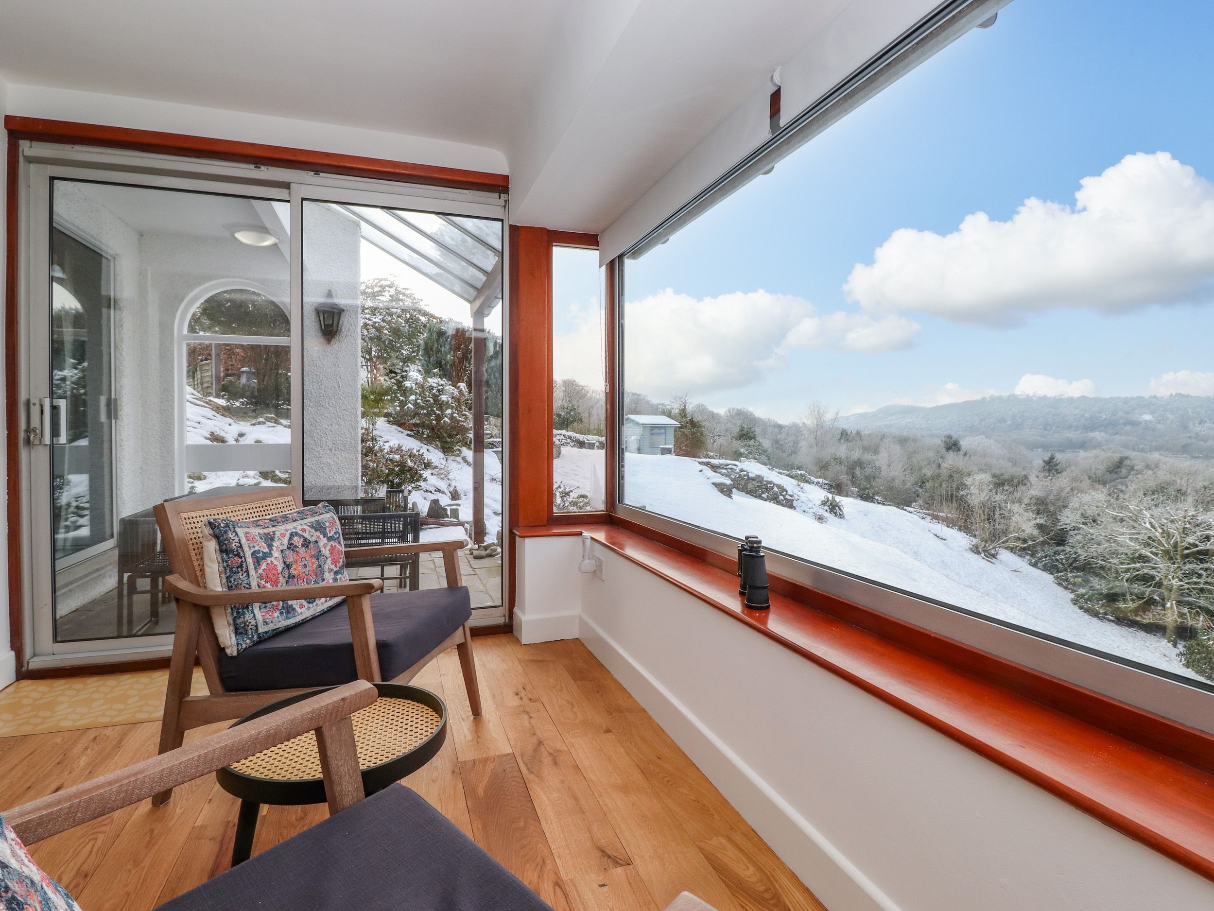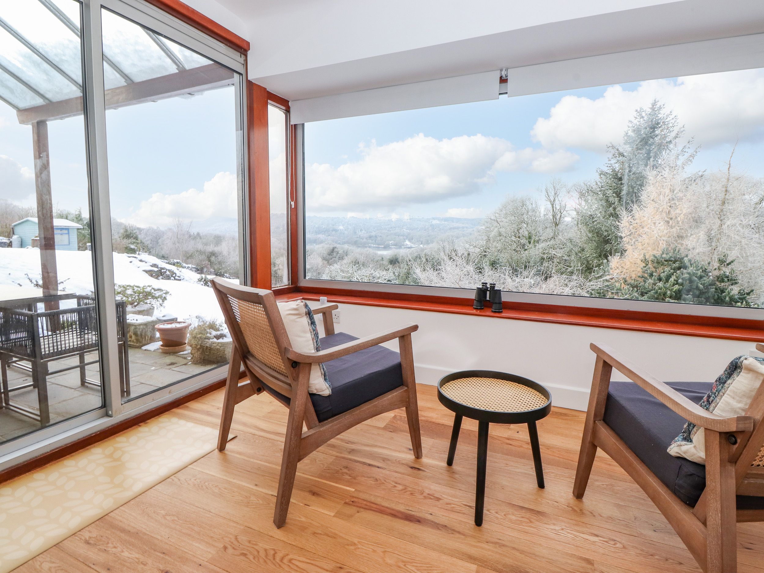 Amenities Central heating and underfloor heating. Electric range cooker with double electric oven and 5-ring hob, cafetiere, microwave, fridge/freezer, dishwasher, washing machine, tumble dryer. 3 x Smart TV, soundbar, WiFi. Fuel and power inc. in rent. Bed linen and towels inc. in rent. Hairdryer provided. Off-road parking for 3 cars. Patio garden with furniture. Sorry, no smoking. 2 well-behaved dogs accepted but please note that the garden is not secure. Shop 4.1 miles, pub 3.9 miles. Note: Not suitable for those with limited mobility. Note: Check-in 4pm, check-out 10am