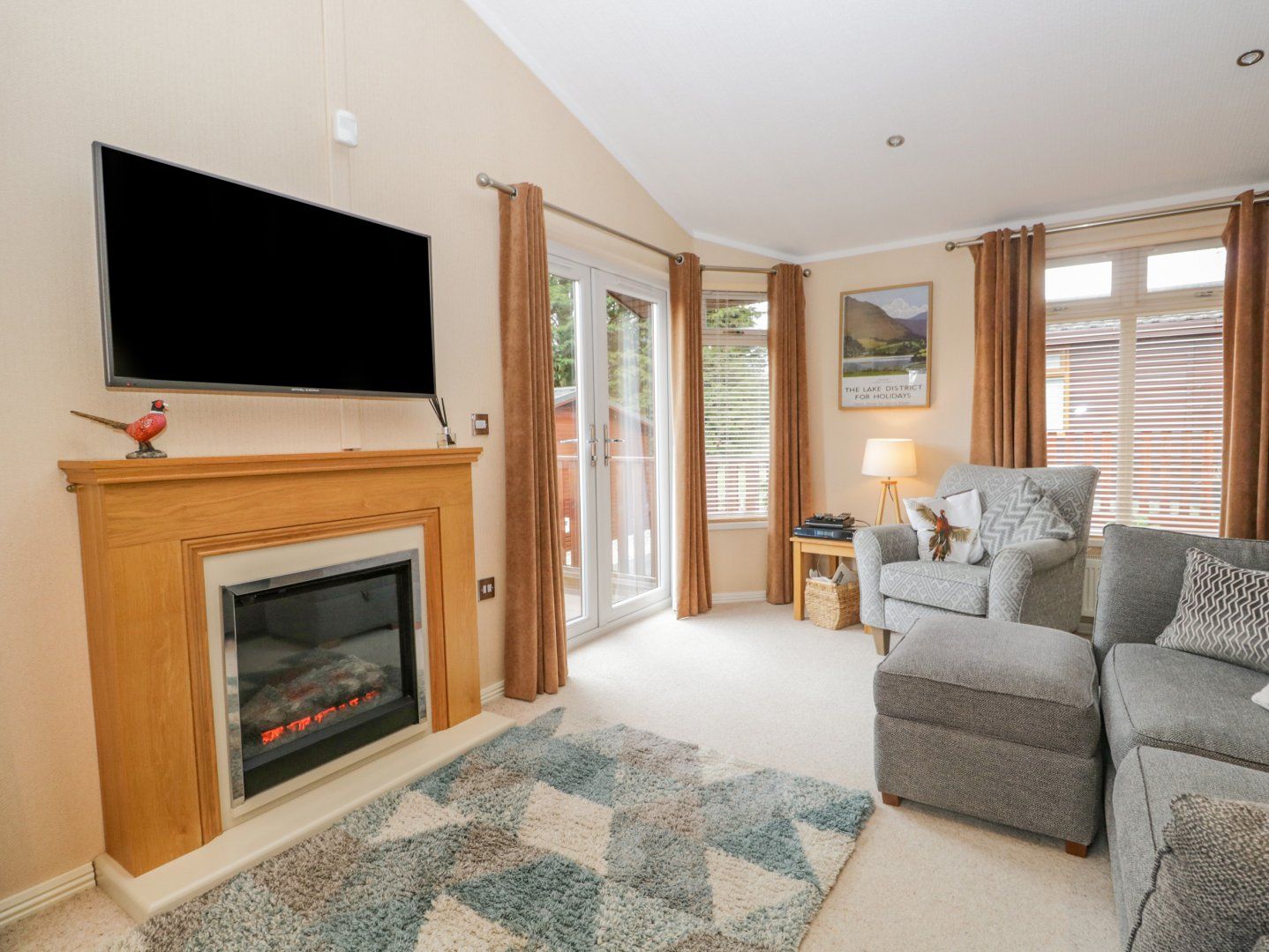 Amenities Full gas central heating. Gas hob and oven, fridge/freezer, microwave, dishwasher, TV, electric fire. Fuel and power inc. in rent. Bed linen and towels inc. in rent (please bring your own leisure towels). Parking for two cars. Two pets welcome. Please note that the charging of electric vehicles is not permitted at this lodge, the nearest charging point can be found at Booths Supermarket in Windermere.