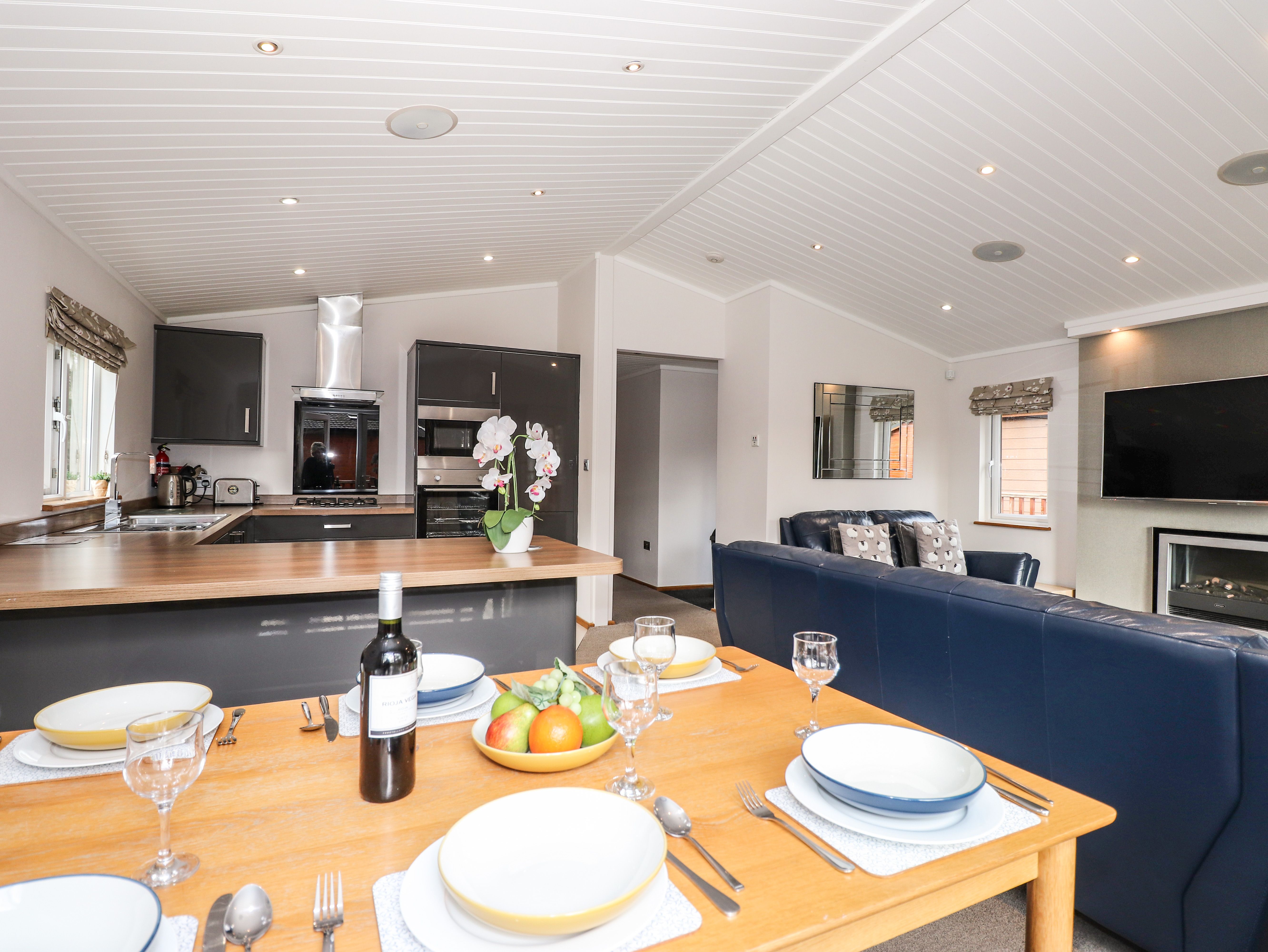 Amenities Please note from 1st September 2023, up to 2 dogs will be accepted at Ridgway. Full gas central heating. Gas hob and electric oven, microwave, fridge/freezer, dishwasher, 55” TV, DVD player. Hot Tub - please note, use of hot tub is between 10am and 10pm only. electric fire, outdoor patio furniture. Fuel and power inc. in rent. Bed linen and towels incl in rent (please bring own beach towels). Parking for two cars. Please note that the charging of electric vehicles is not permitted at this lodge, the nearest charging point can be found at Booths Supermarket in Windermere.