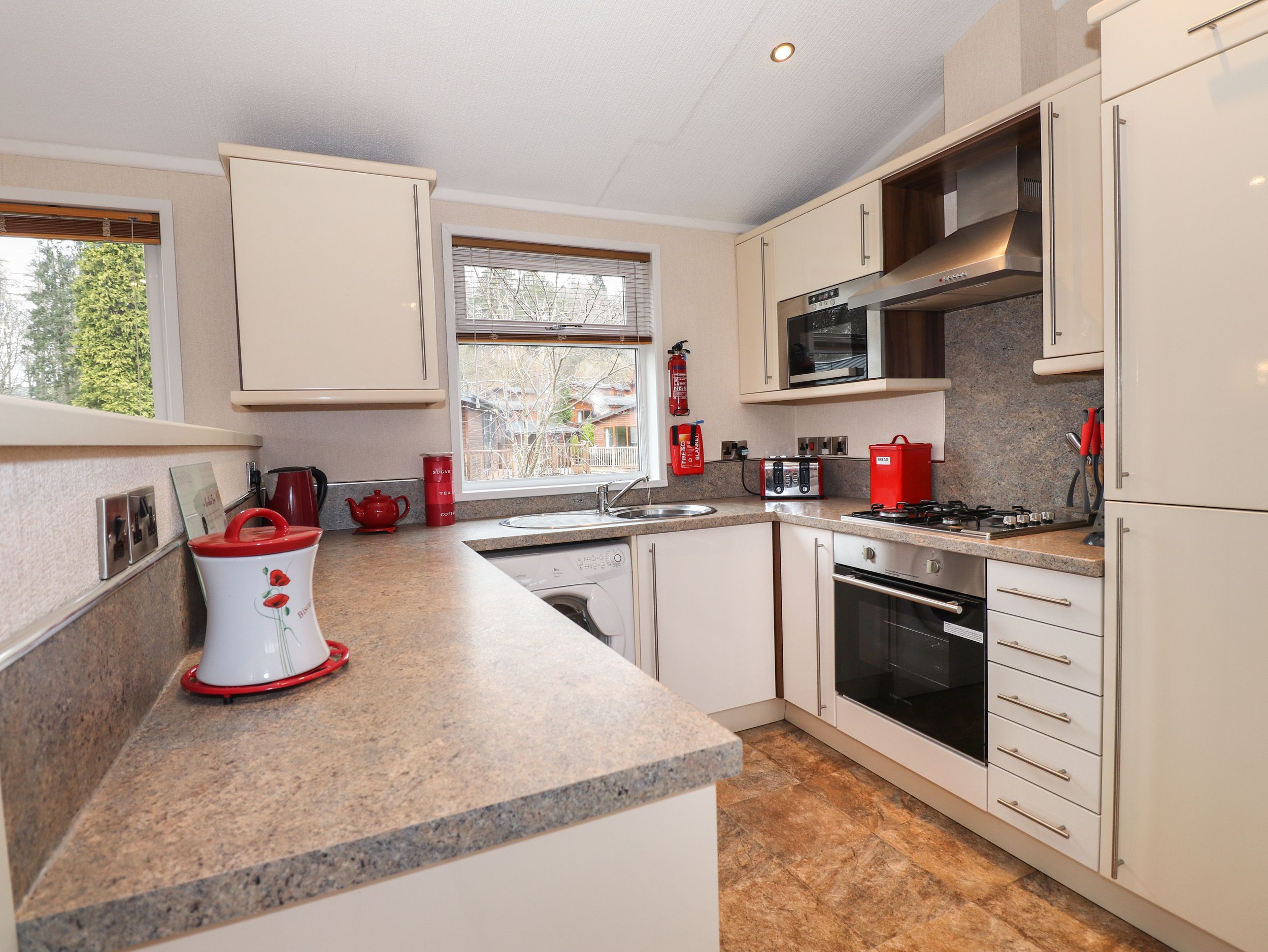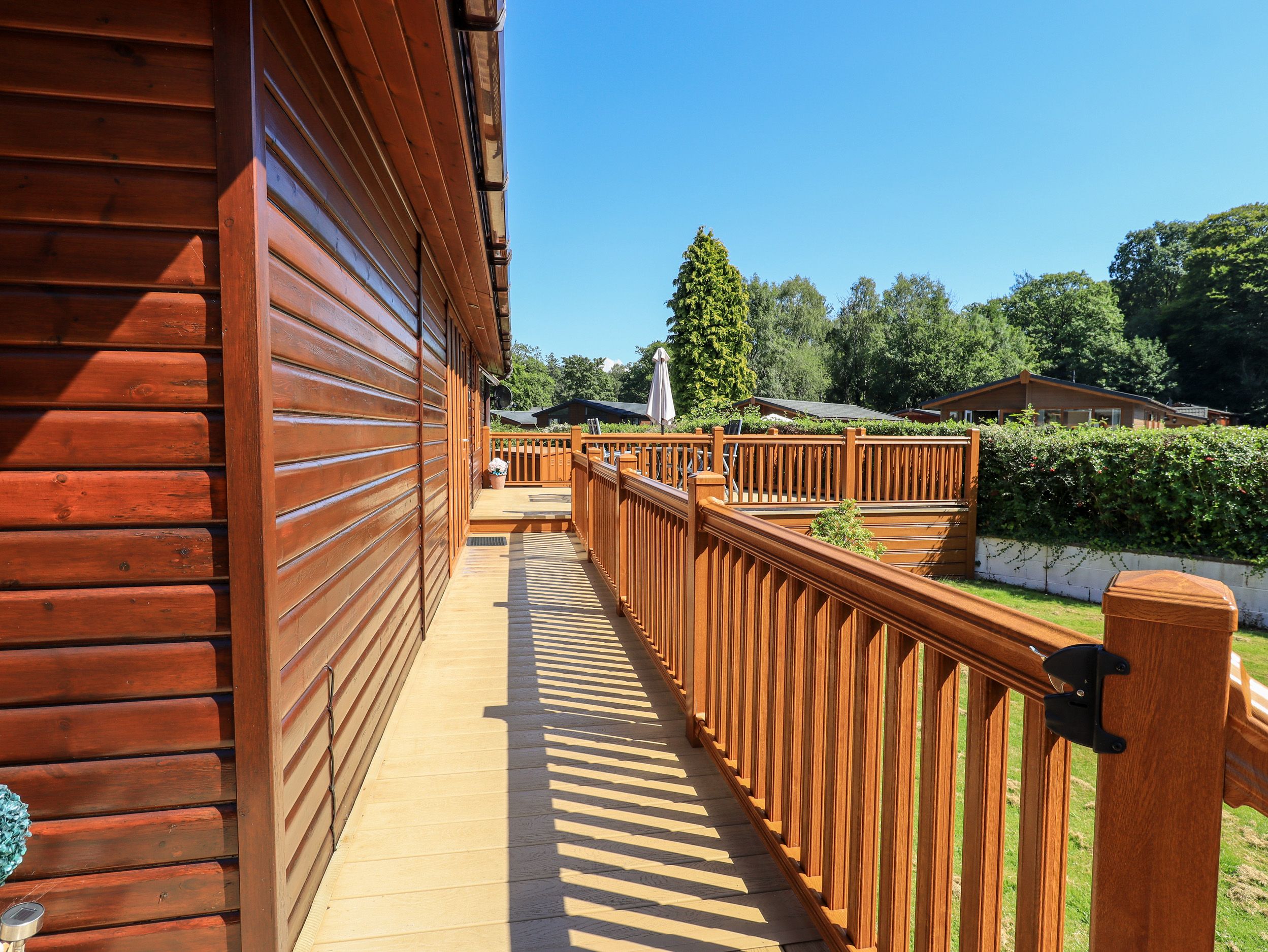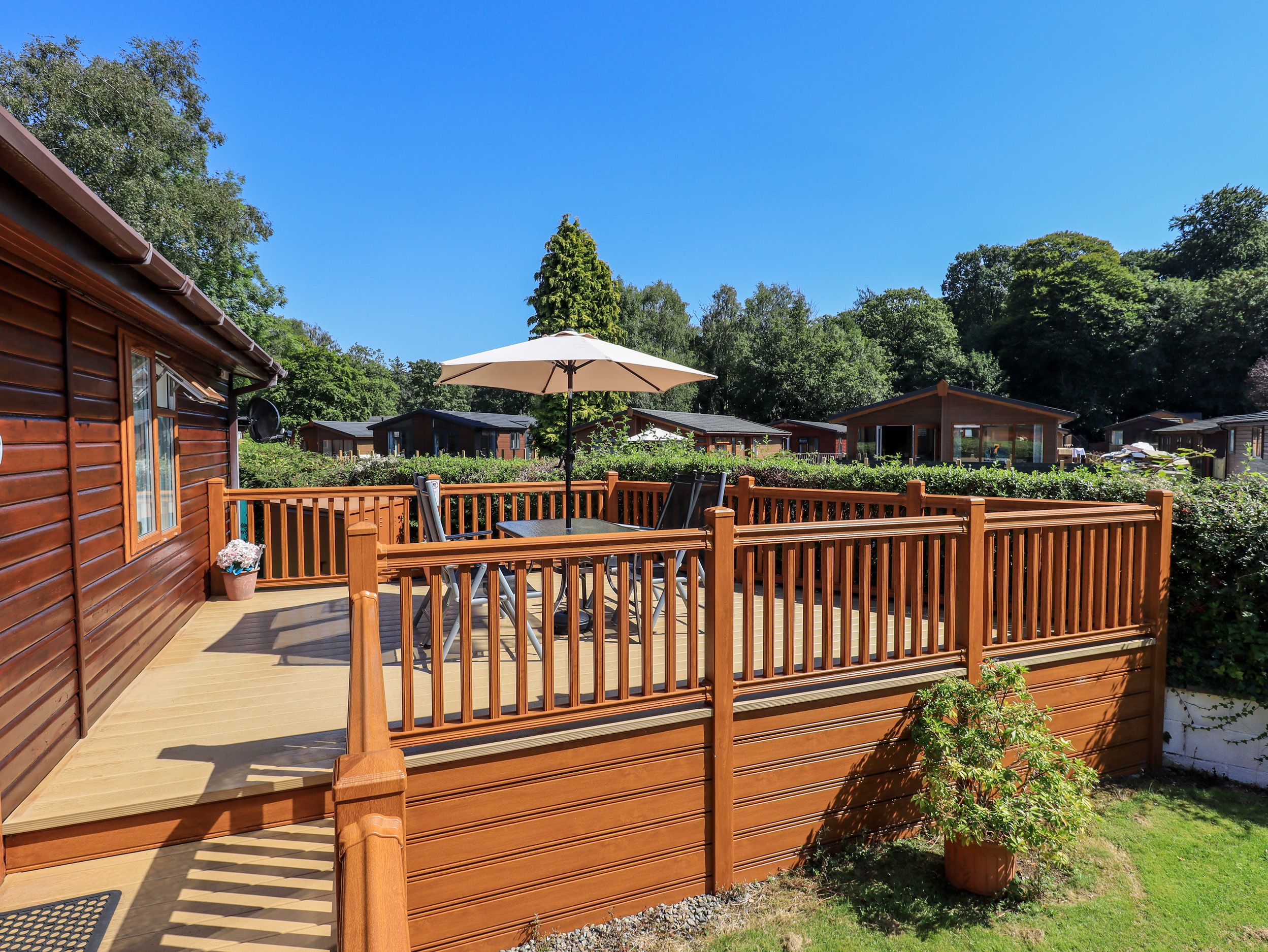 Full gas central heating. electric oven, microwave, fridge, freezer, dishwasher, washing machine, TV, Sky Sports and Entertainment channels, electric fire, TV in master bedroom, decking with outdoor furniture. Fuel and power inc in rent. Bed linen and towels incl in rent, please bring your own leisure towels. Parking for one car at the lodge, public parking elsewhere on the Park. Please note that the charging of electric vehicles is not permitted at this lodge, the nearest charging point can be found at Booths Supermarket in Windermere. Sorry no smoking and no pets. BBQs are not allowed on the newly installed composite deck. Shop on site: 500 yards. Complimentary WiFi is provided by the park and subject to fair usage guidelines, Quality and reliability of connection will vary based on the number of people using it, prevailing weather conditions and therefore may be limited or slower than you are used to, WiFi is for personal use only and is not intended for high data usage, gaming and/or use for business purposes, This is only suitable for page browsing and sending emails, Bookings cannot be accepted if they are solely reliant on the provision of uninterrupted and unlimited Wi-Fi, We are not held responsible or liable for the WiFi on the park. If you encounter any issues with the WiFi, please contact White Cross Bay reception. Access to the local leisure facilities is complimentary and can be withdrawn at any time without financial penalty, we as the letting agent or the property owner cannot be held responsible for this provision in service, as it’s subject to third-party provider located off site. Note: For use of the onsite facilities, a complex pass is required, these can be purchased from reception. This lodge offers a 5% discount for returning guests
