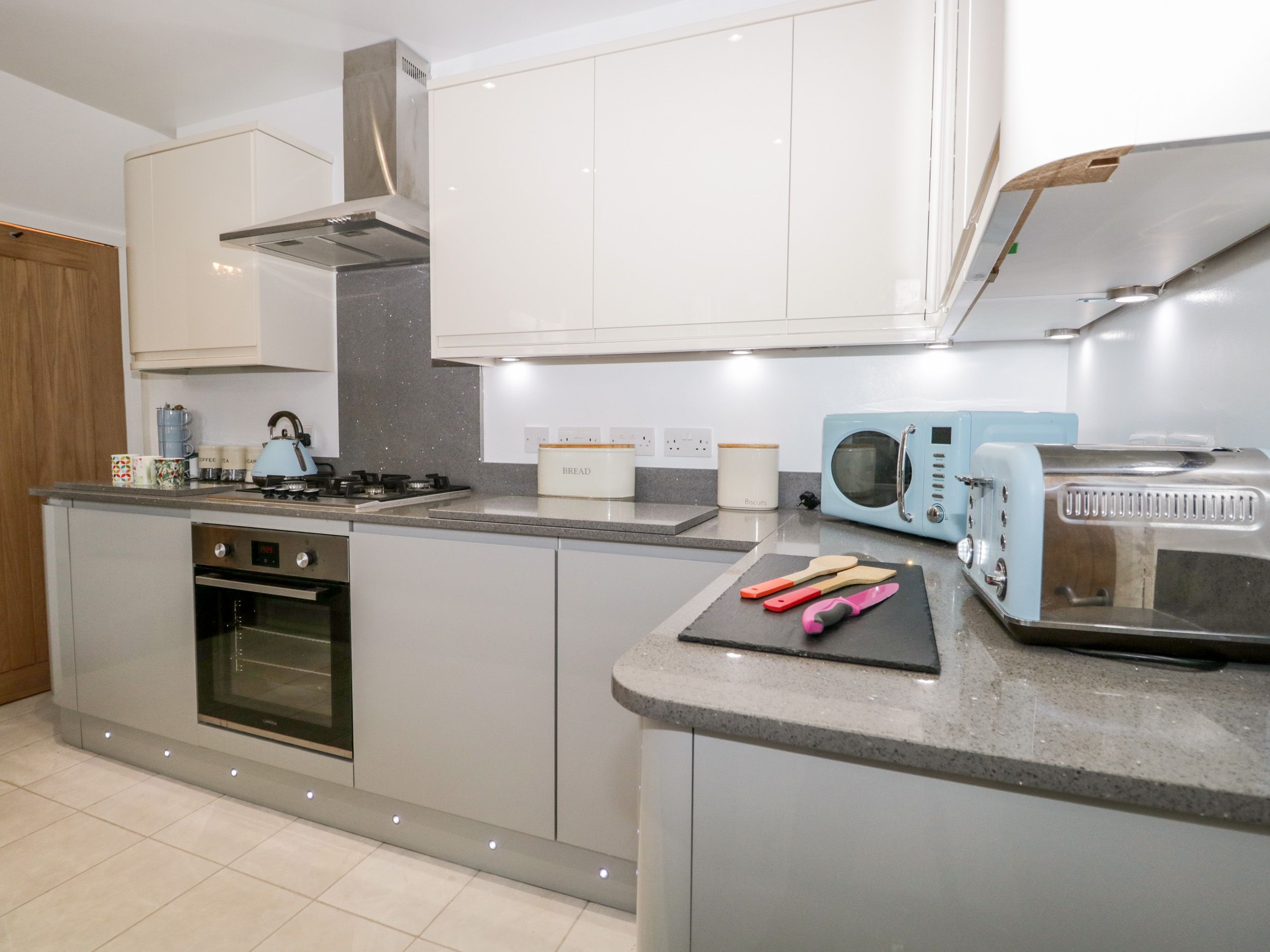 Four bedrooms: 1 x double, 1 x twin with an additional cot, 1 x twin and 1 x bunk beds. Ground-floor shower room with shower, basin and WC. Bathroom with bath, shower over, basin and WC. Open-plan living space with kitchen, Electric oven and gas hob, microwave, fridge, fridge/freezer, Dishwasher, washing machine, dining area and sitting area. Sitting room.