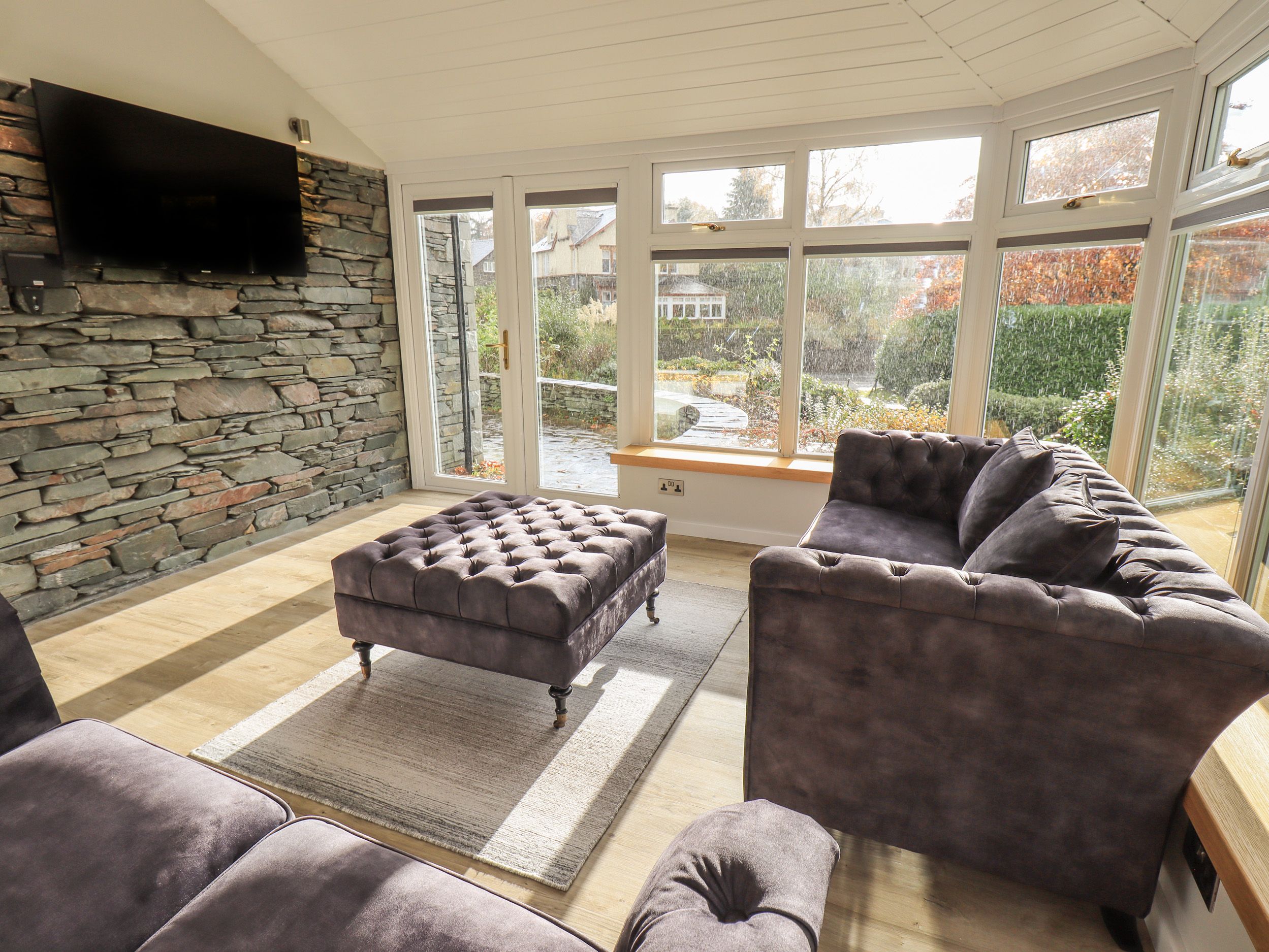 Over three floors Four bedrooms with TVs and en-suite walk-in showers with basins, heated towel rails and WCs. 1 x second-floor king-size, 2 x king-size, 1 x twin zip/link (can be king-size on request). Main Bedroom also includes separate linked dressing room. Finished to a high eco standard with each room having their own individual heating thermostat controllers. Ground floor cloakroom and WC. Open-plan living space with kitchen, dining area and sitting area with electric fire. Conservatory snug with Smart TV, Nintendo Switch and Android Tablet.Eco Friendly Infrared Electric oven and hob, microwave, fridge/freezer, washing machine, dishwasher, wine cooler, kettle, toaster. Smart TV, Fast WiFi, Disney Plus and Netflix on all TV's. Fuel and power inc. in rent.Bed linen and towels inc. in rent. Off-road parking for four cars.Large rear garden with patio, lawn, and furniture. Sorry, no smoking. Windermere town centre 0.2 miles with shops and pubs, Windermere Lake 0.7 miles Note: dog accepted but please refrain from letting them on the furniture and beds. Note: Check-in from 4pm, check-out by 10am. Note: Narrow staircase to second floor plus low beams and limited head room, please take care