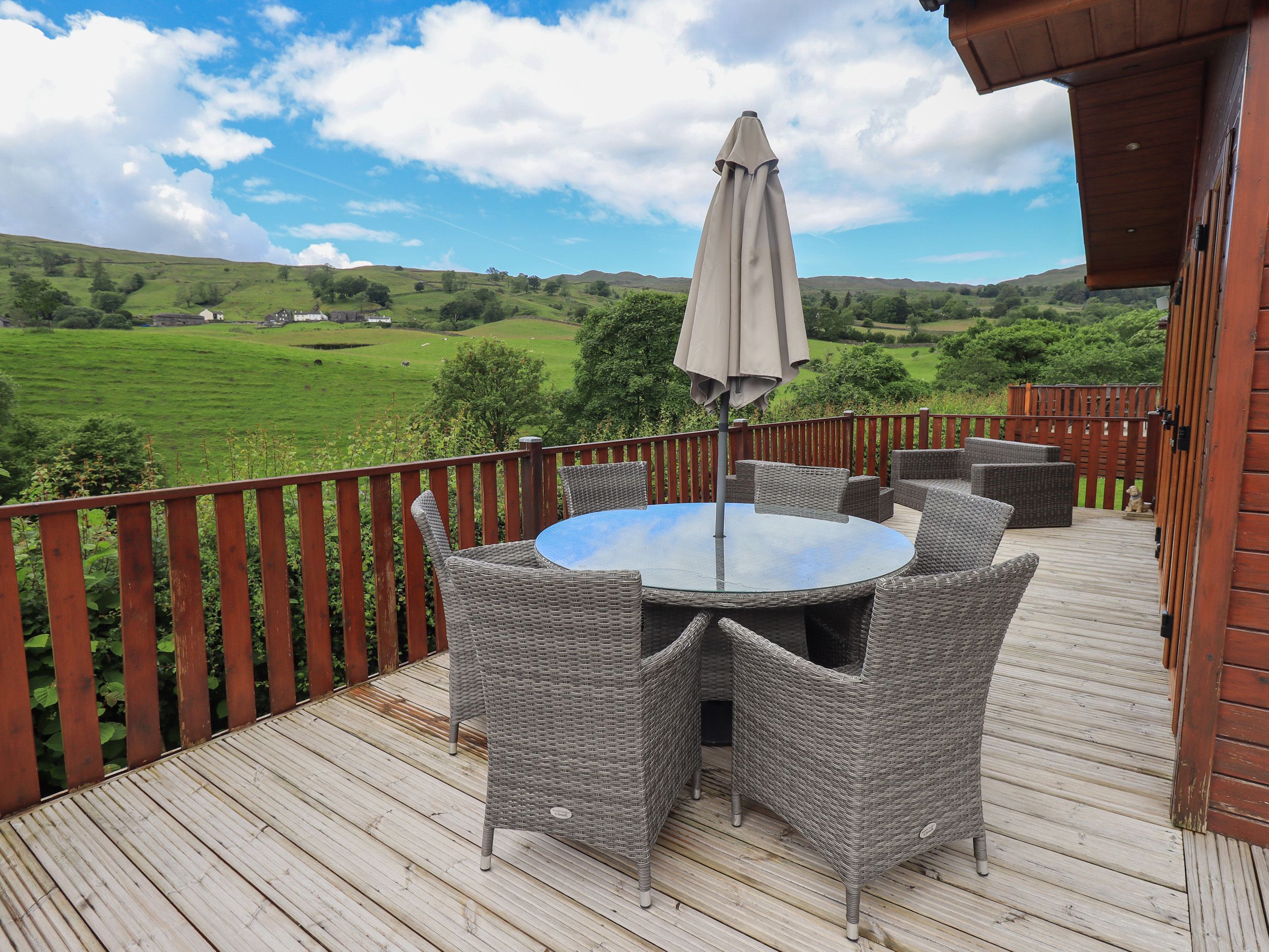 Three bedrooms: 1 x kingsize with ensuite double walk-in shower, basin, WC, 1 x twin with full size divan beds, 1 x twin with narrow singles (more suitable for children) Family shower room with shower, basin, WC. Spacious open plan lounge, kitchen and dining area. A slab or base is provided for a BBQ but please bring your own BBQ and dispose of it responsibly. Wansfell Retreat is accessed by 5 steps. The lodge is then all on the same ground floor level.