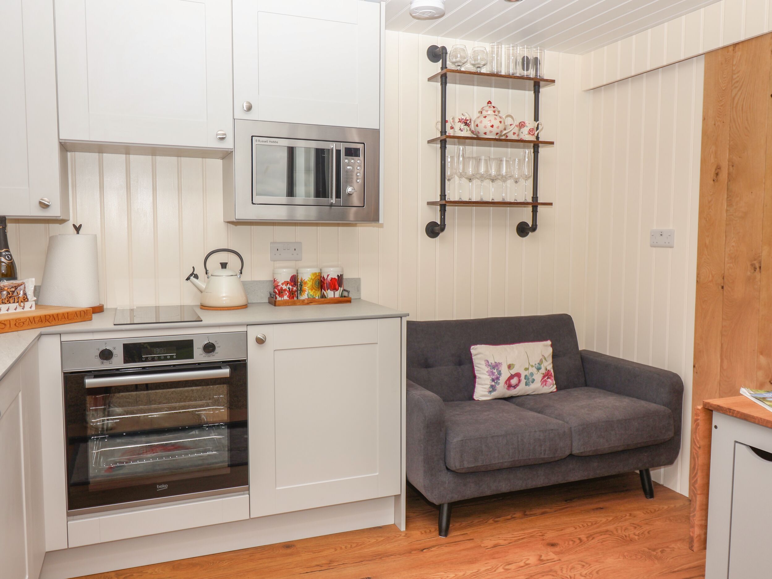 Amenities Central underfloor heating. Electric oven and hob, microwave, fridge with freezer box, kettle, toaster. TV, WiFi. Fuel, power and starter pack for outdoor fire pit included in rent. Bed linen and towels inc. in rent. Off-road parking. Enclosed garden with gravelled area, lawn, hot tub, furniture, charcoal barbecue and woodburning fire pit. One well-behaved dog welcome. Sorry, no smoking. Shop 1.6 miles, pub 0.5 miles. Note: The property is set rurally on the owner's working farm; given the rural location, the WiFi signal can occasionally become intermittent in adverse weather, however there is good 4G and 5G