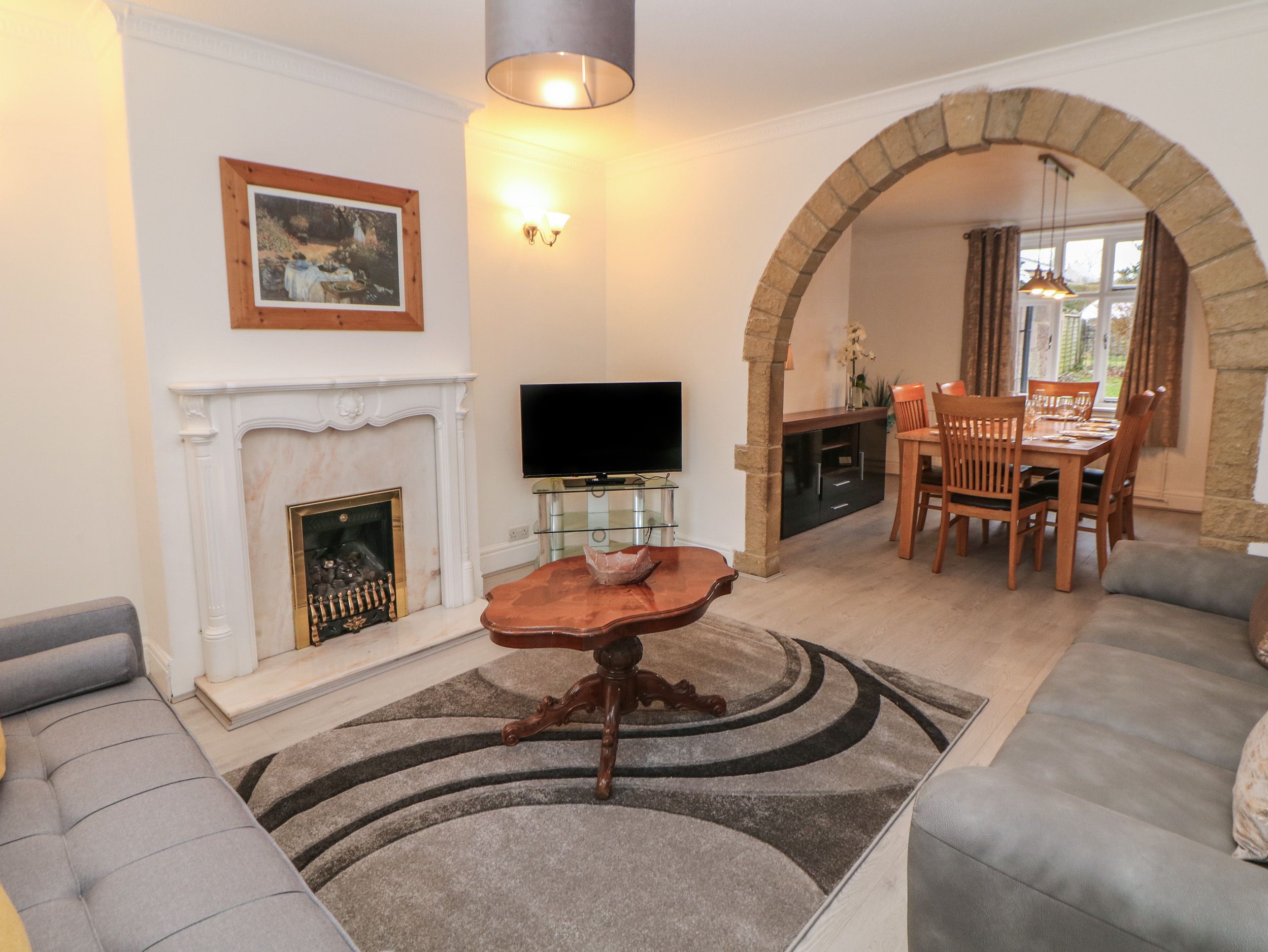 Amenities Central heating. Electric oven, gas hob, microwave, fridge, washing machine, kettle, toaster. TV, WiFi. Fuel and power inc. in rent. Bed linen and towels inc. in rent. Roadside parking. Enclosed rear garden with lawn and patio. Enclosed front lawn. One well-behaved dog welcome. Note: Wifi only available after 7th Jan 2025. Sorry, no smoking. Shop 0.7 miles, pub 0.6 miles