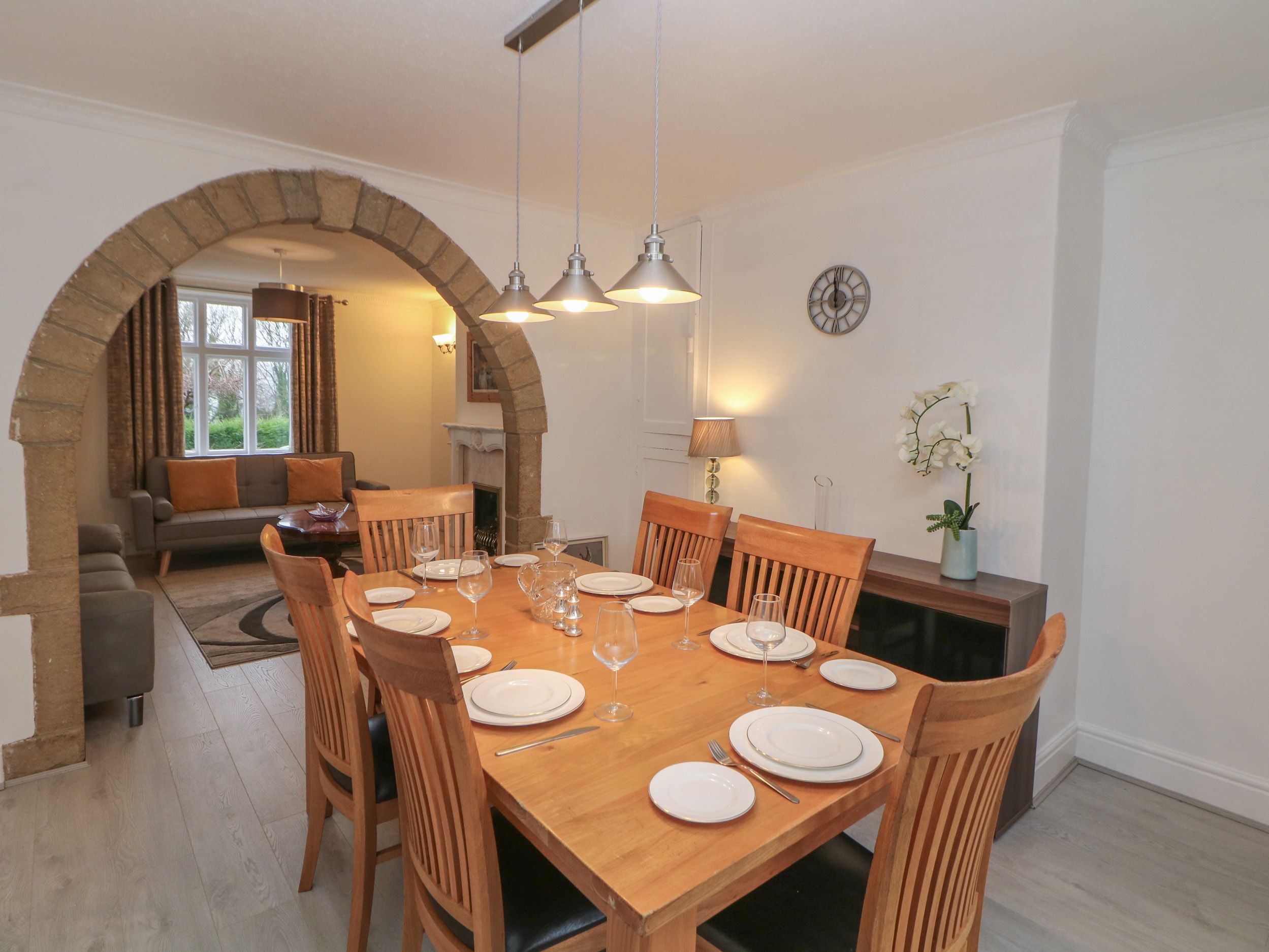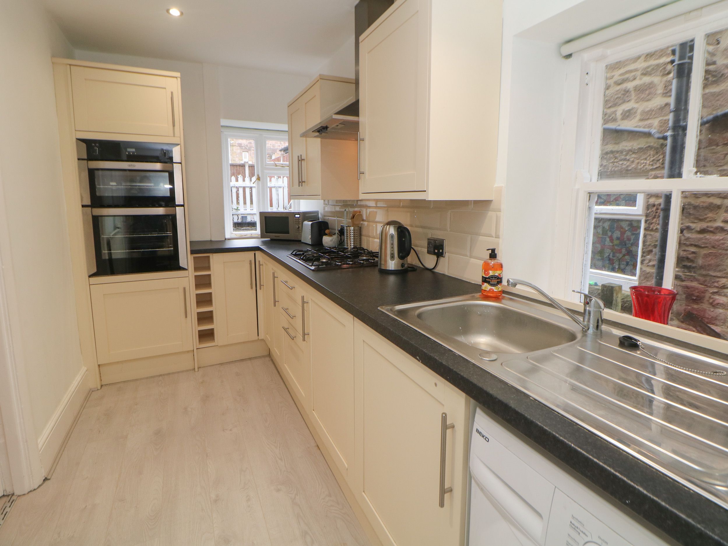 Holiday home 15 Calton View, a semi-detached house, consists of a kitchen with an electric oven, gas hob, microwave, kettle, toaster, fridge, and washing machine, and a living/dining room with TV and dining seating. The bedrooms consist of a king-size, double, and single. There is a bathroom with a bath, shower over, basin, and WC. WiFi, fuel, power, bed linen, and towels are included in the rent. Outside, there is an enclosed rear garden with lawn and patio, an enclosed front lawn, and roadside parking. Pet-friendly. Sorry, no smoking at this property. Uncover the best of Derbyshire and its surrounding areas with a holiday at 15 Calton View.