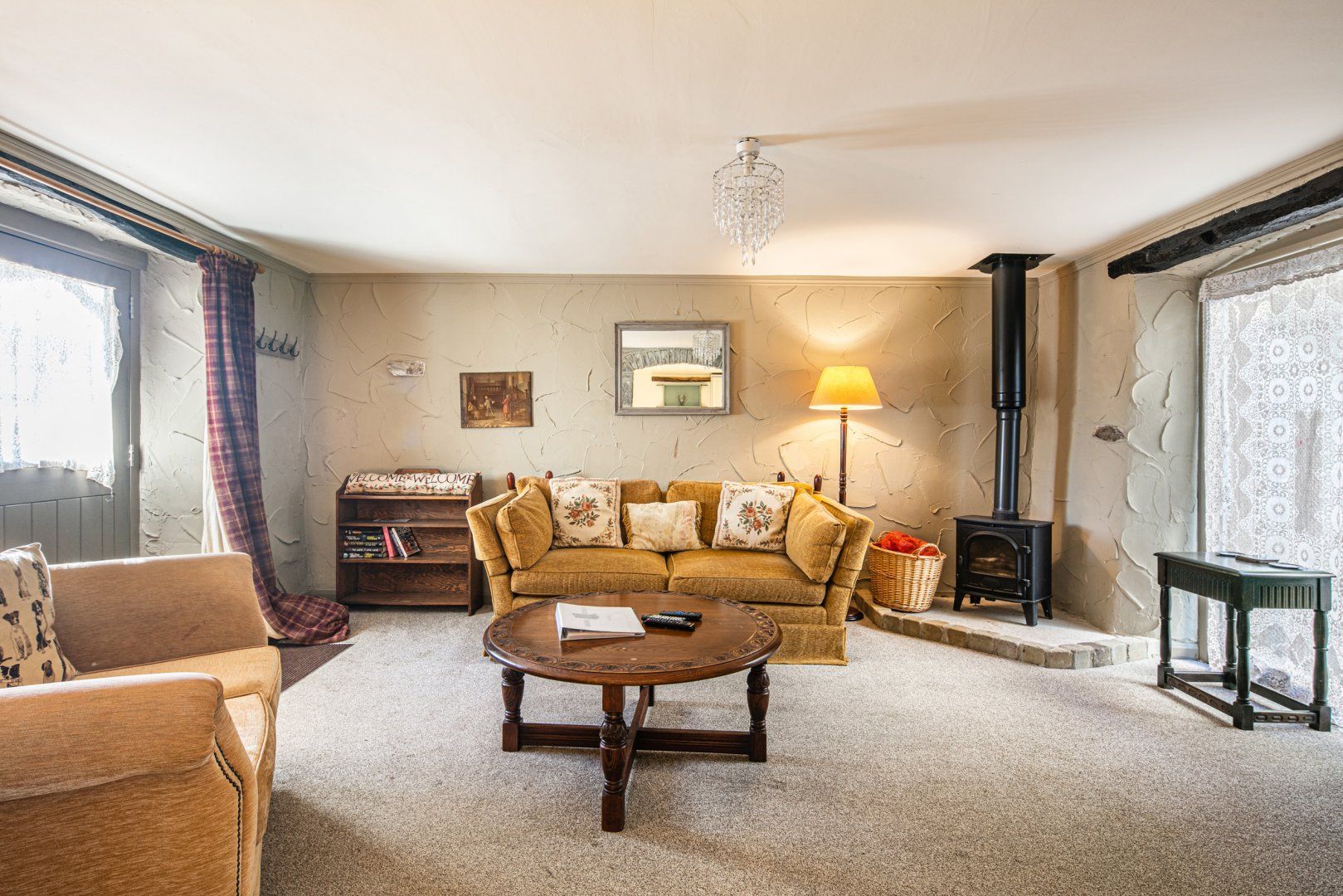 Accomodation Details Two bedrooms: 1 x double, 1 x twin. Bathroom with roll-top bath, walk-in shower, basin, heated towel rail, and WC. Kitchen/diner. Sitting room with woodburning stove. Shared games room