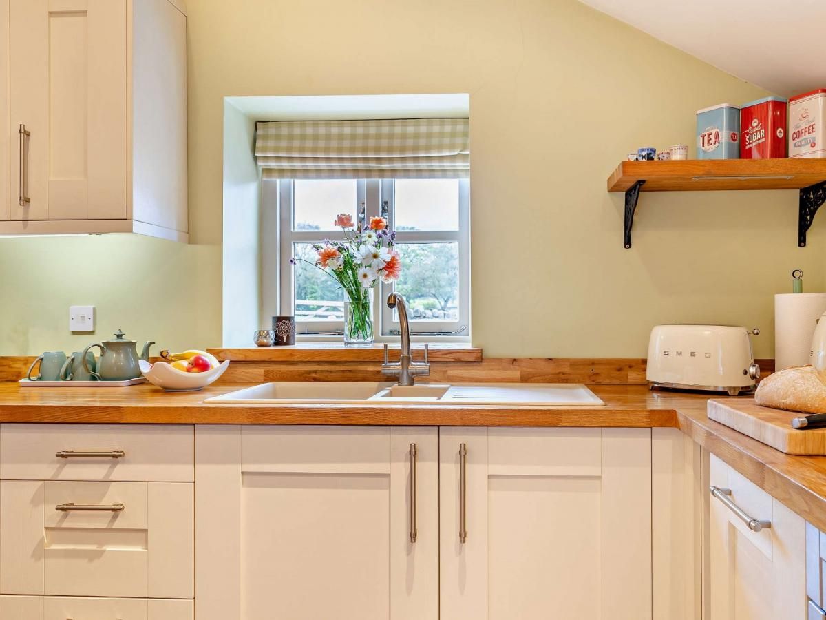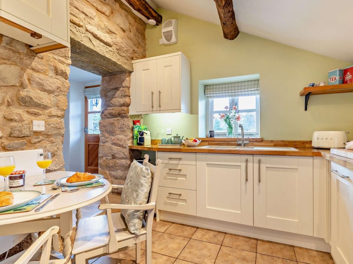 The cottage is brimming with style and character, with exposed beams and stonework, wooden floors, and contemporary fixtures and fittings.
