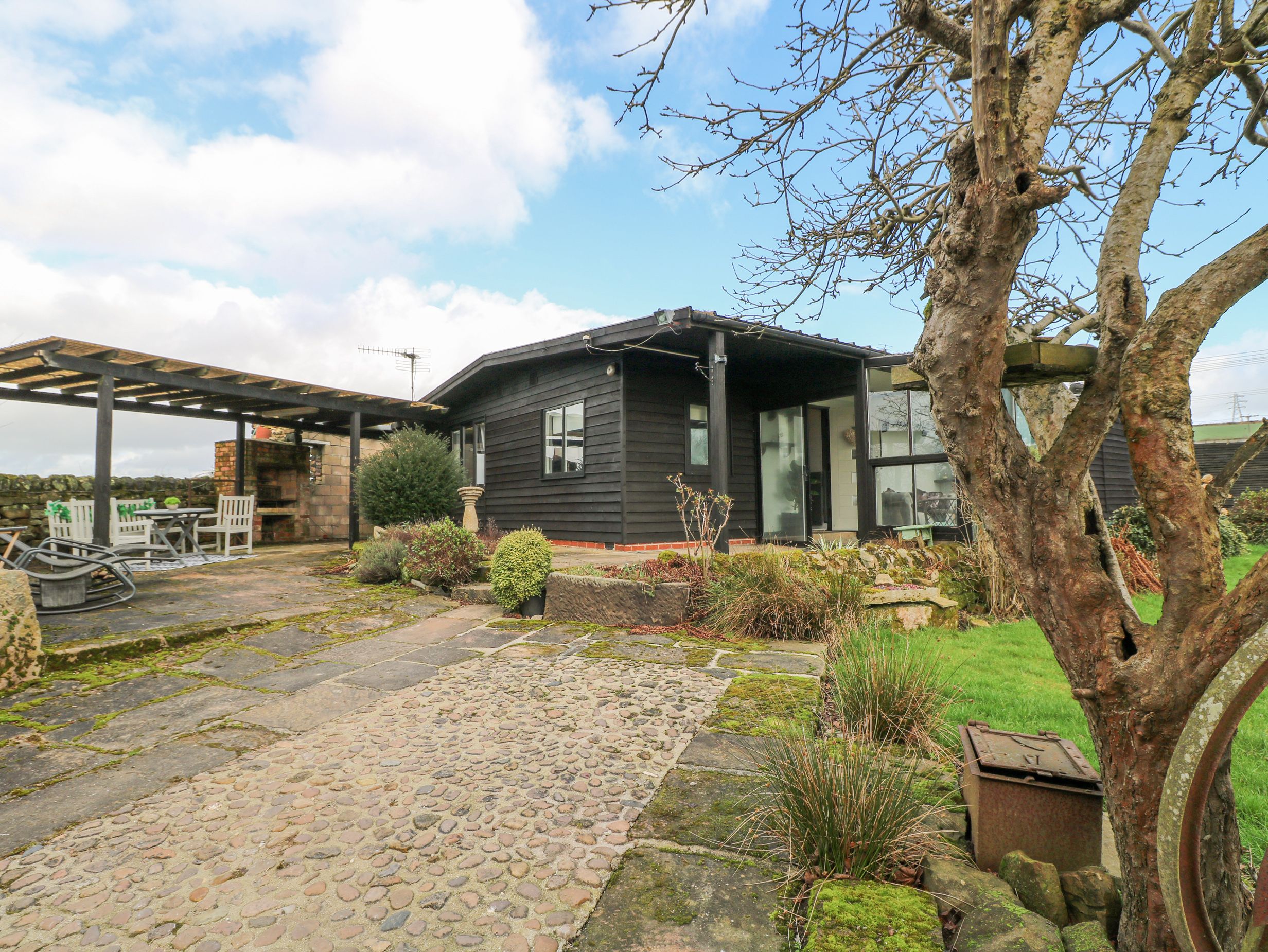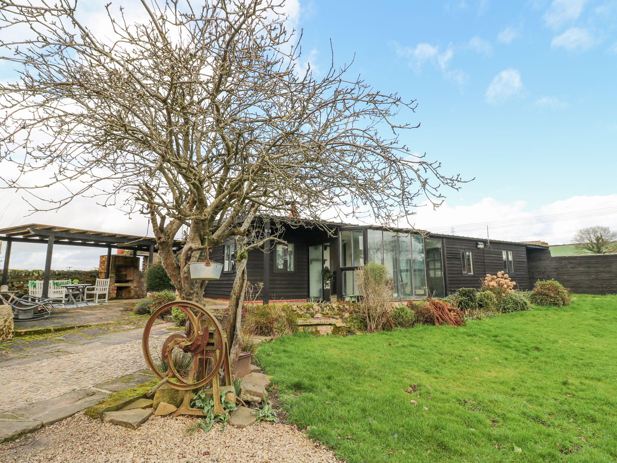Amenities Electric wall heaters. Electric oven and hob, microwave, fridge, freezer, washer/dryer, dishwasher, kettle and toaster. Smart TV, WiFi. Fuel and power inc. in rent. Bed linen and towels, slippers and robes inc. in rent. Highchair and travel cot available. Off-road parking for 4 cars. Non-enclosed patio with furniture, barbecue, sun loungers and hot tub. Access to communal front garden with lawn. Three well-behaved pets welcome. Sorry, no smoking. Shop and pub 0.9 miles. Note: The shared lawn is not enclosed. Note: Hen Dos only, no Stag or similar parties. Note: Woodburning stove in lounge is for display purposes only. Note: Monday and Friday check in only, thank you. Note: No smoking allowed in the hot tub