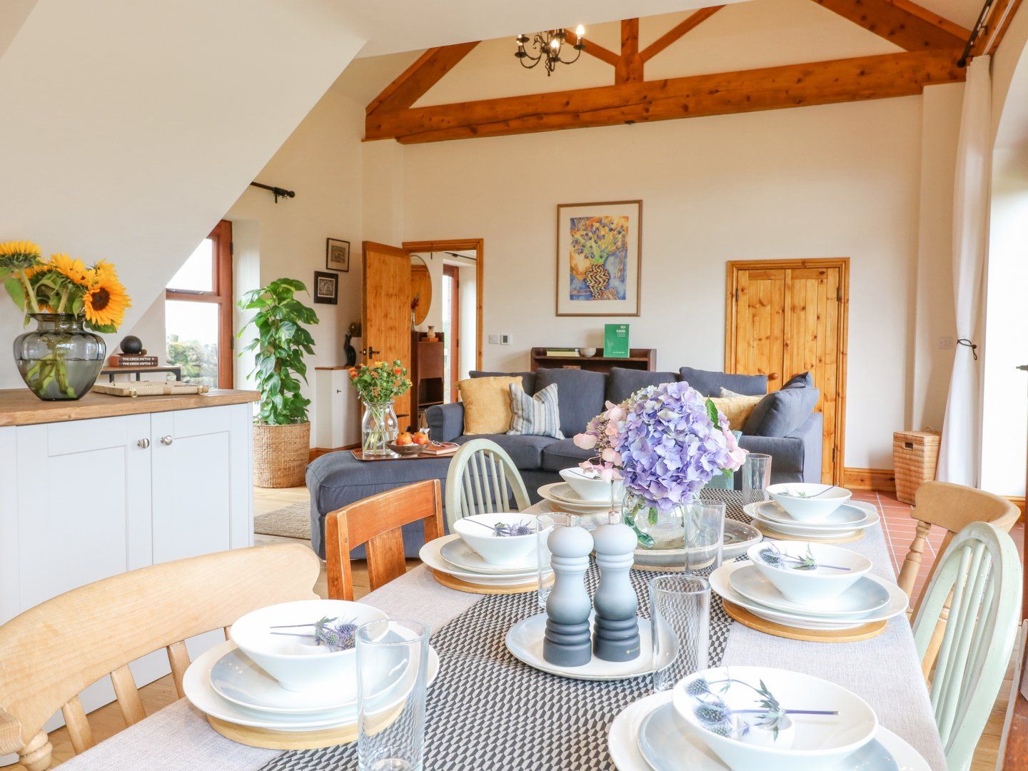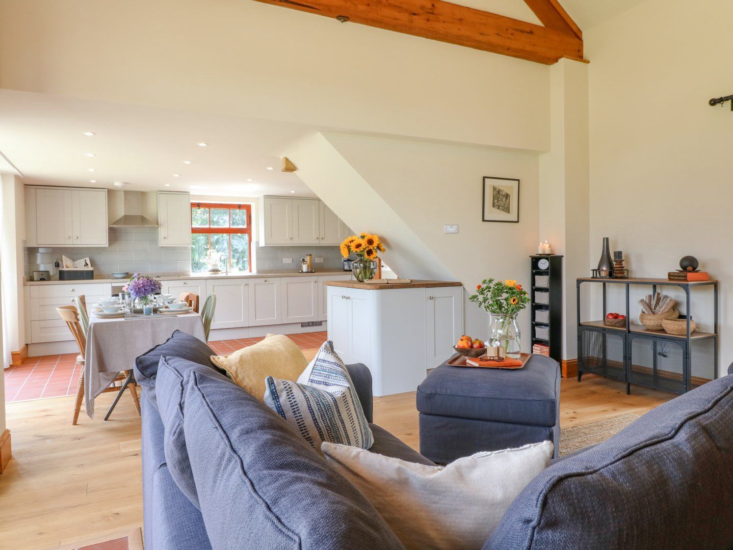 Gas underfloor heating. Electric oven and hob, microwave, fridge/freezer, washing machine, tumble dryer, dishwasher. TV, WiFi, and a selection of books. Fuel and power inc. in rent (except for car charging). Bed linen and towels inc. in rent. Travel cot and highchair available on request, but please bring your own cot bedding. Off-road parking for 2 cars, there is one EV charging bay on site, available for an additional cost. Private garden with lawn, patio and furniture. Bicycle storage available. Sorry, no pets and no smoking. Shop 1.2 miles, pub 0.3 miles. Note: The property is surrounded by working farmland. Note: A further single, suitable for a child, can be added to the first-floor super-king bedroom.