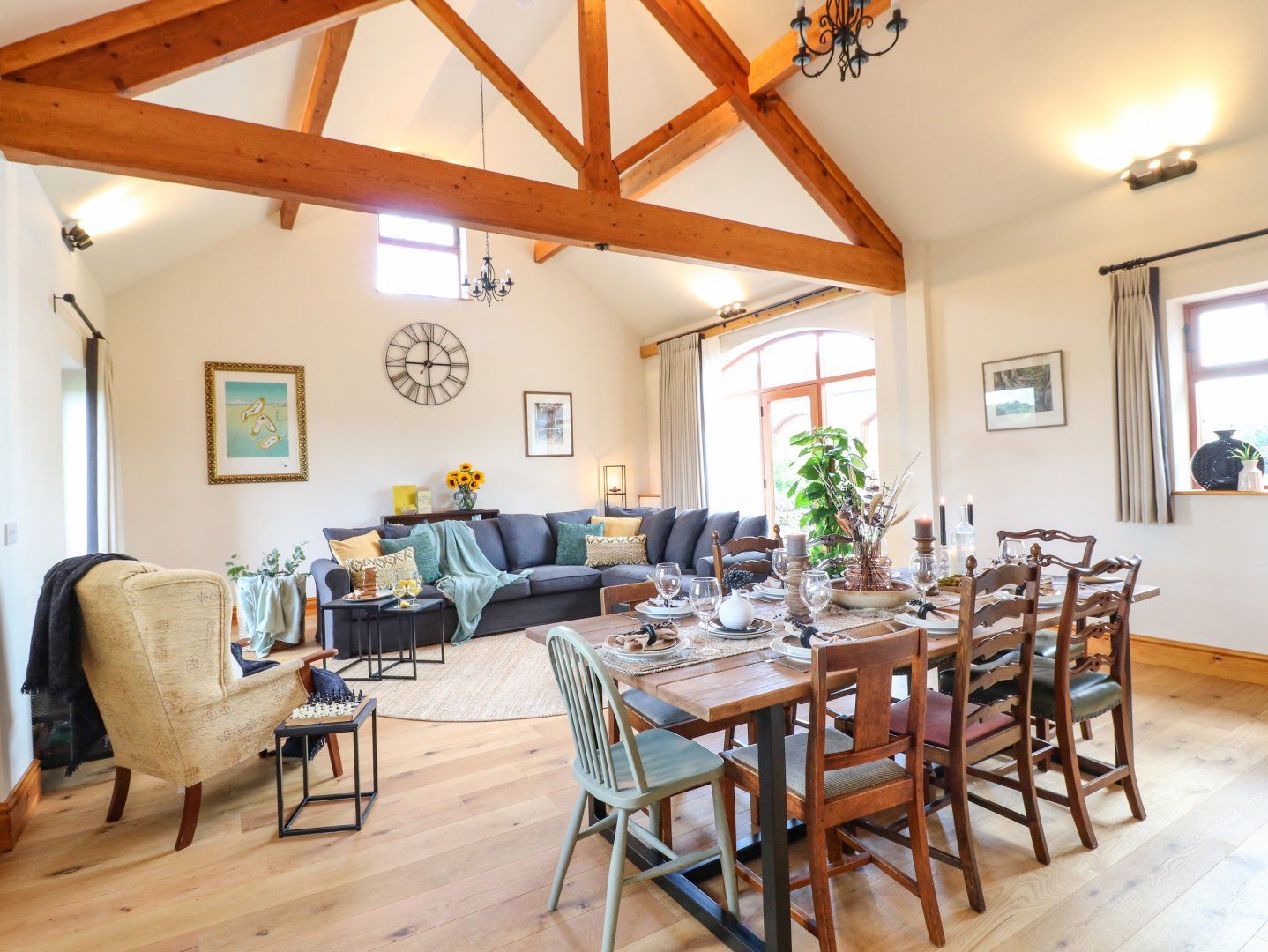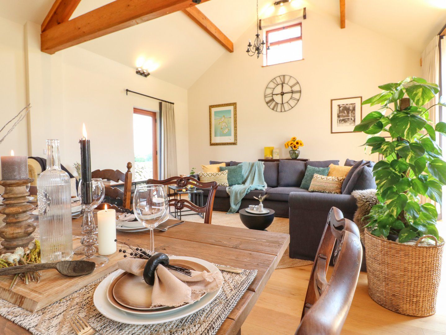 Gas underfloor heating. Electric oven and hob, microwave, fridge/freezer, wine cooler, washing machine, dishwasher. TV, WiFi, and a selection of books. Fuel and power inc. in rent (except for car charging). Bed linen and towels inc. in rent. Travel cot and highchair available on request, please bring own cot bedding. Off-road parking for 2 vehicles, there is one EV charging bay on site, available for an additional cost. Bicycle storage available. Private garden with lawn, patio and furniture. Sorry, no pets and no smoking. Shop 1.2 miles, pub 0.3 miles. Note: There are 5 outside steps from carpark to property. Note: A further single, suitable for a child, can be added to one of the ground floor bedrooms. Note: The property is surrounded by working farmland. Note: The property can only accommodate 8 adults and 1 child aged 12 yrs and under